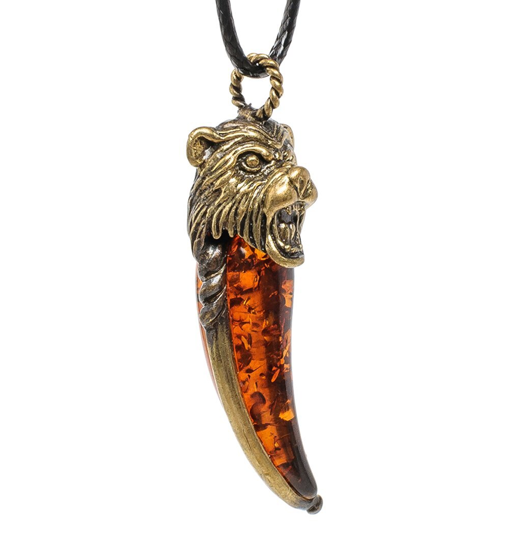 AM-1679 Подвеска «Клык Медведя» (латунь, янтарь)