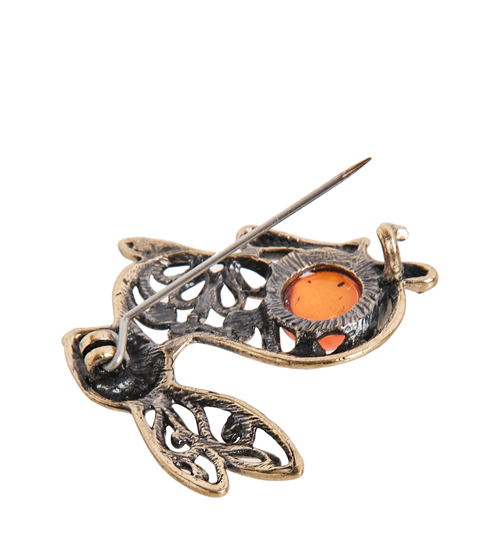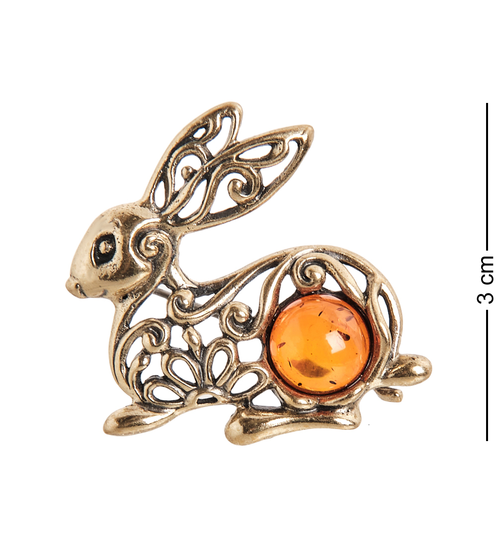 AM-2330 Брошь «Зайчик» (латунь, янтарь)