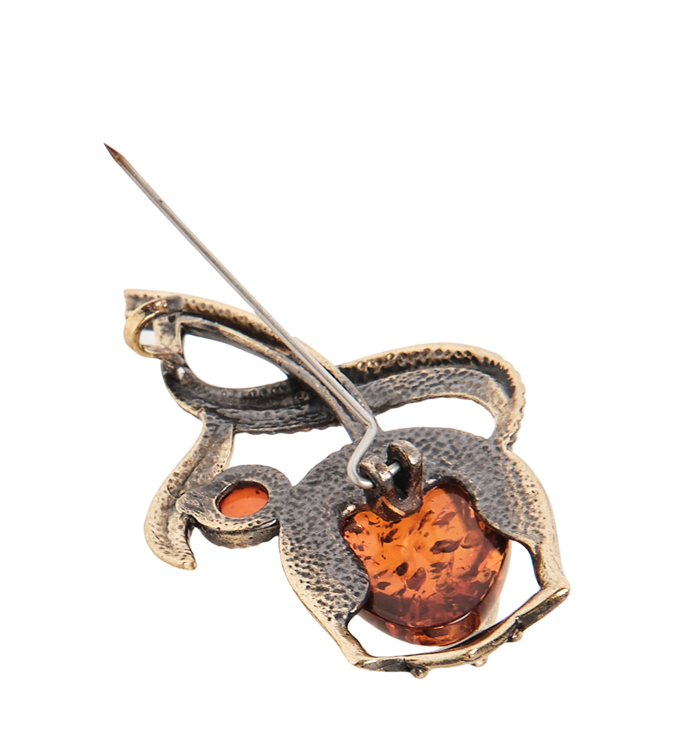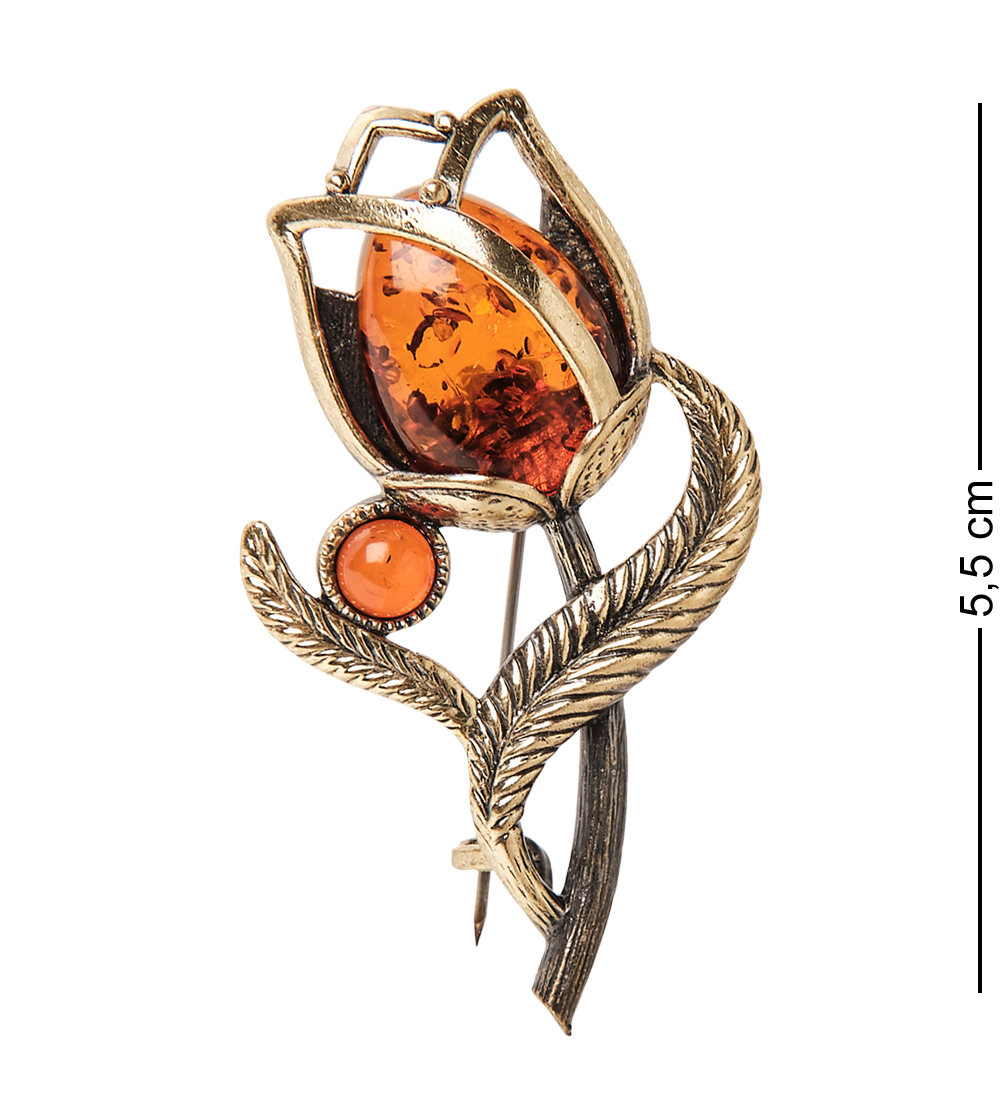 AM-2401 Брошь «Тюльпан» бол. (латунь, янтарь)