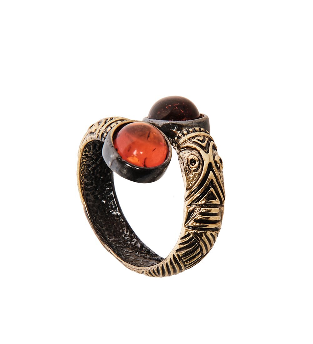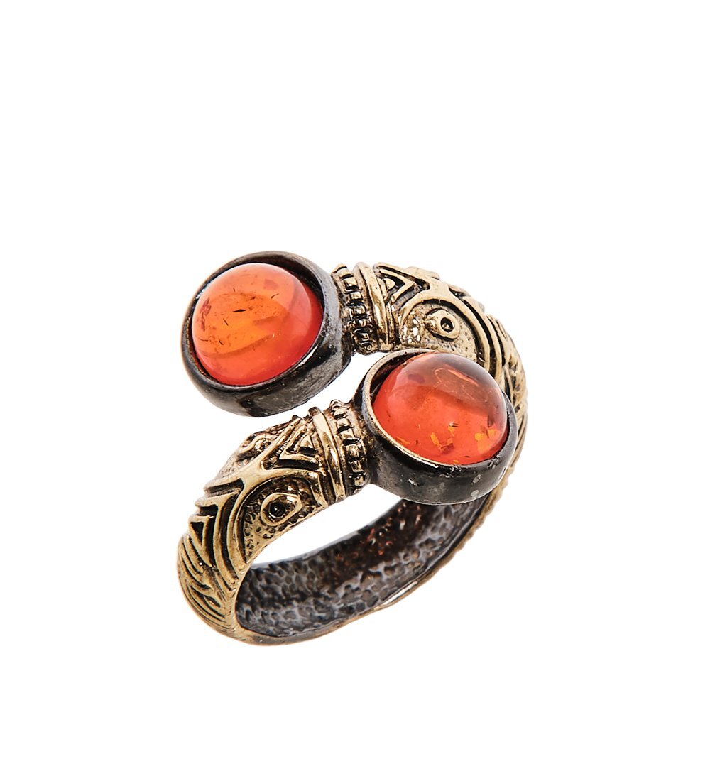 AM-2522 Кольцо «Бесконечность» (латунь, янтарь)