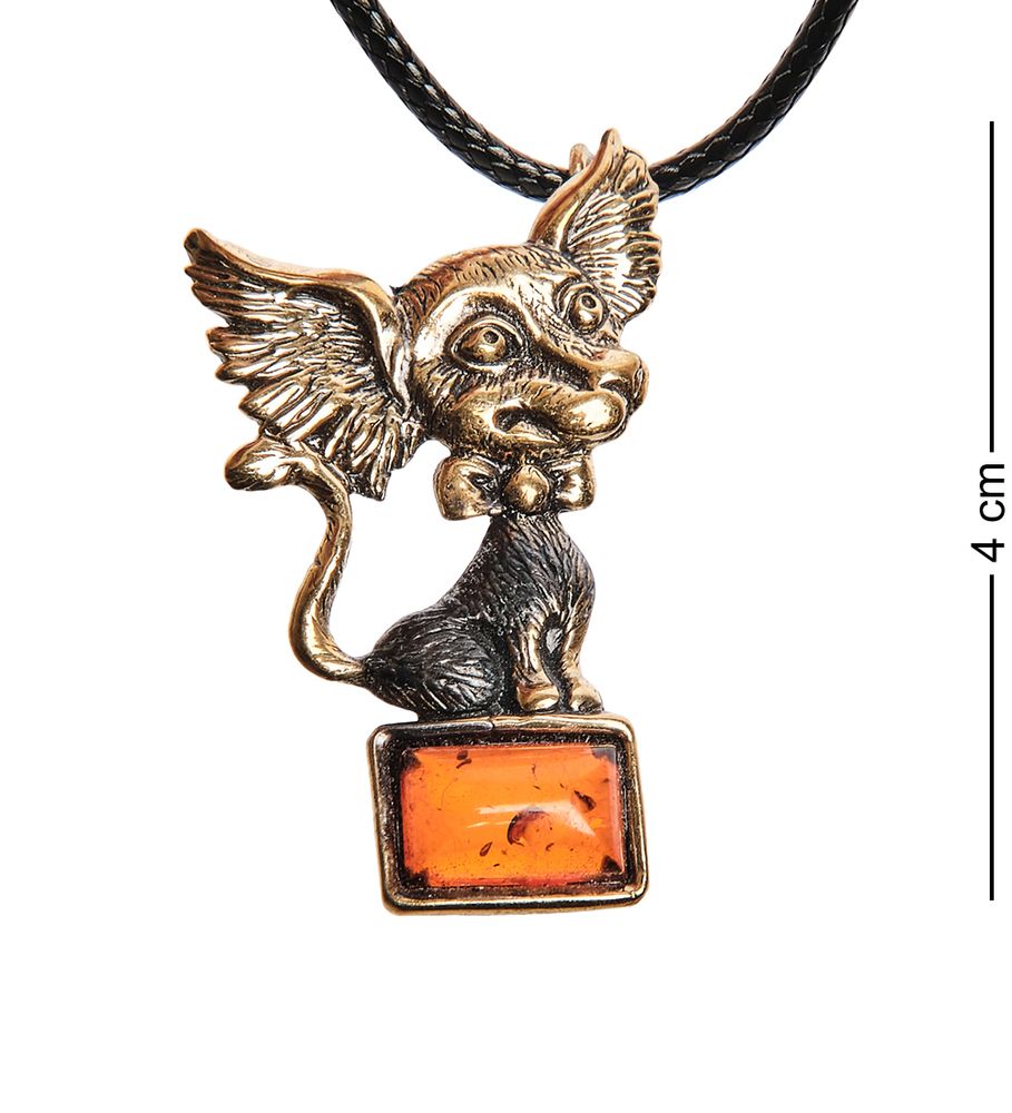 AM-2935 Подвеска «Той-терьер» (латунь, янтарь)