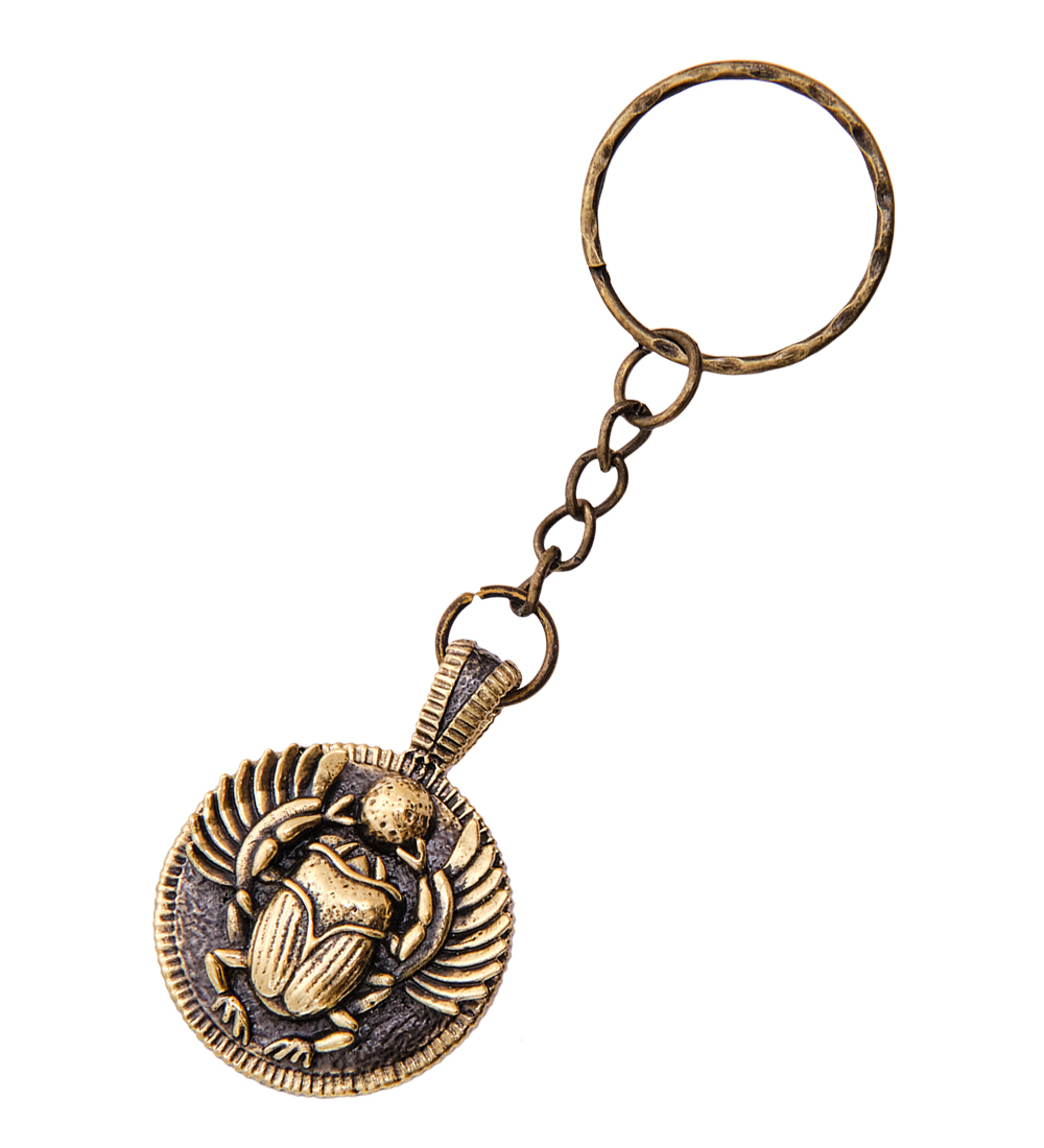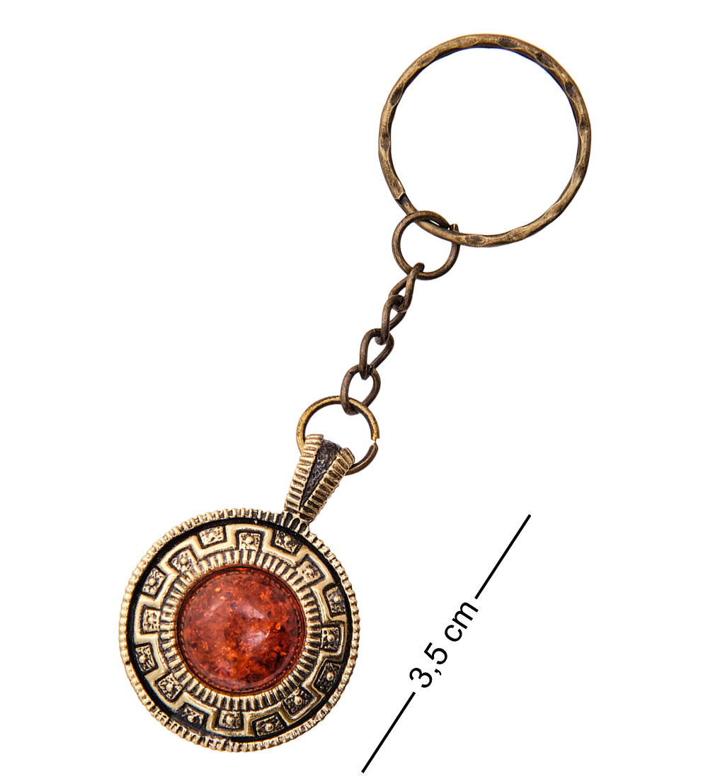 AM-3590 Брелок «Жетон Жук Скарабей» (латунь, янтарь)