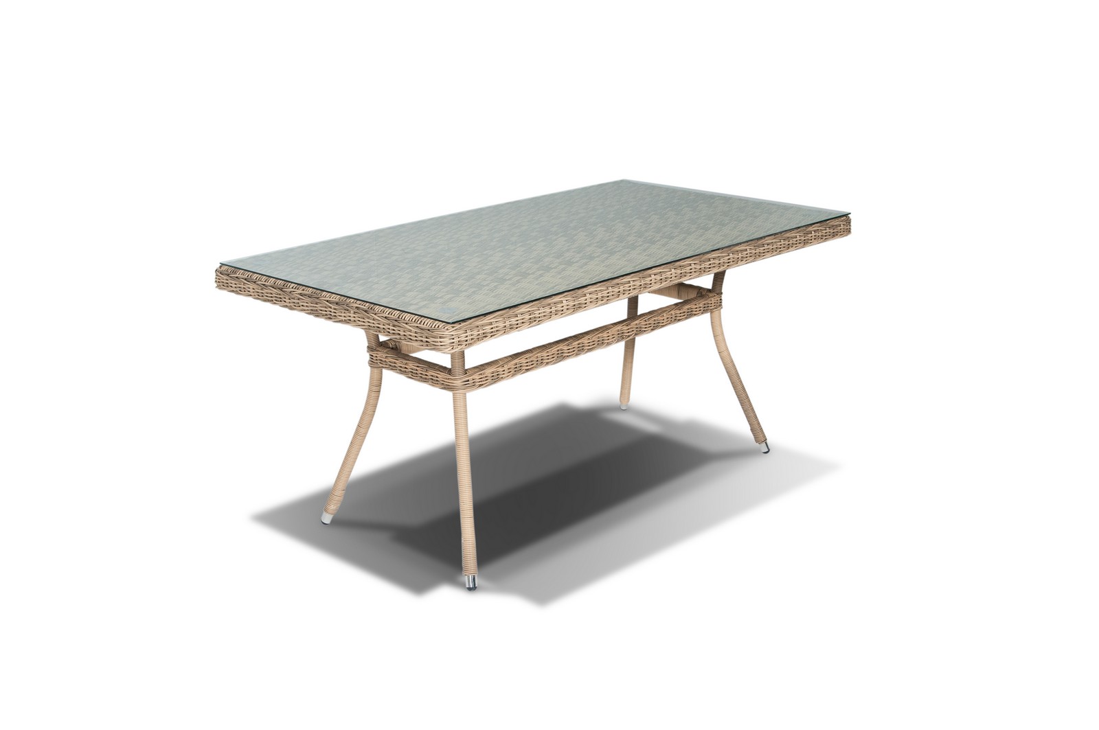 В качестве рабочей поверхности плетеного обеденного стола выступает стеклянная столешница, которая крепится при помощи вакуумных силиконовых держателей и поставляется в собранном виде.