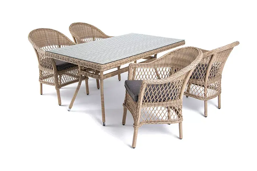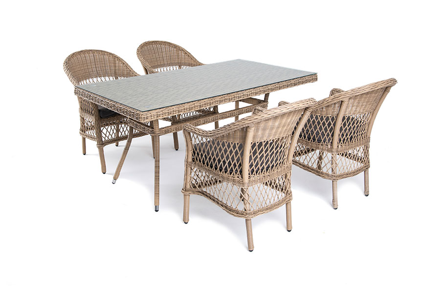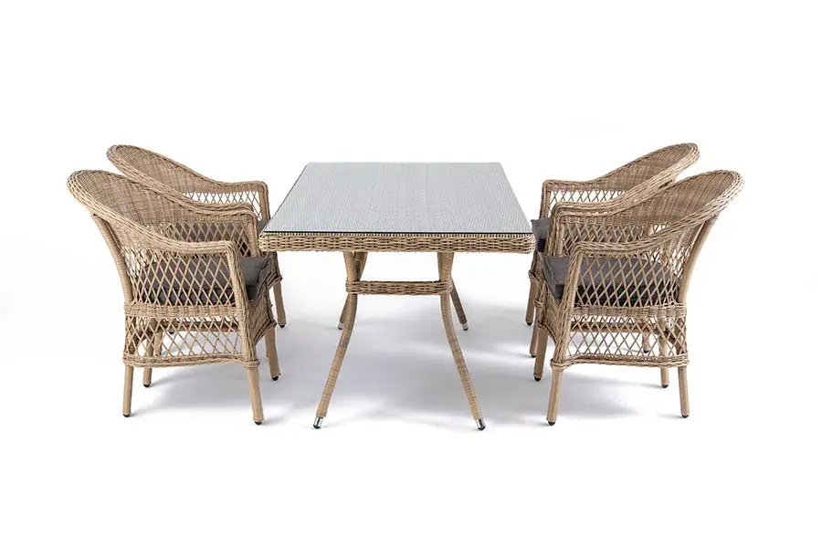Обеденная группа «Амароне» относится к числу садовой мебели для обустройства открытых террас и веранд.