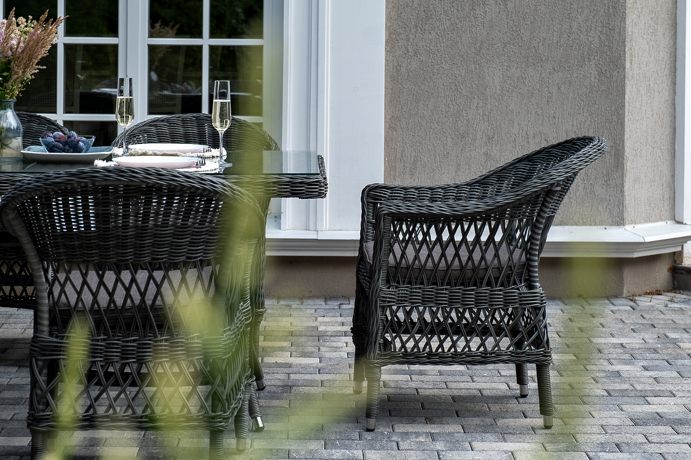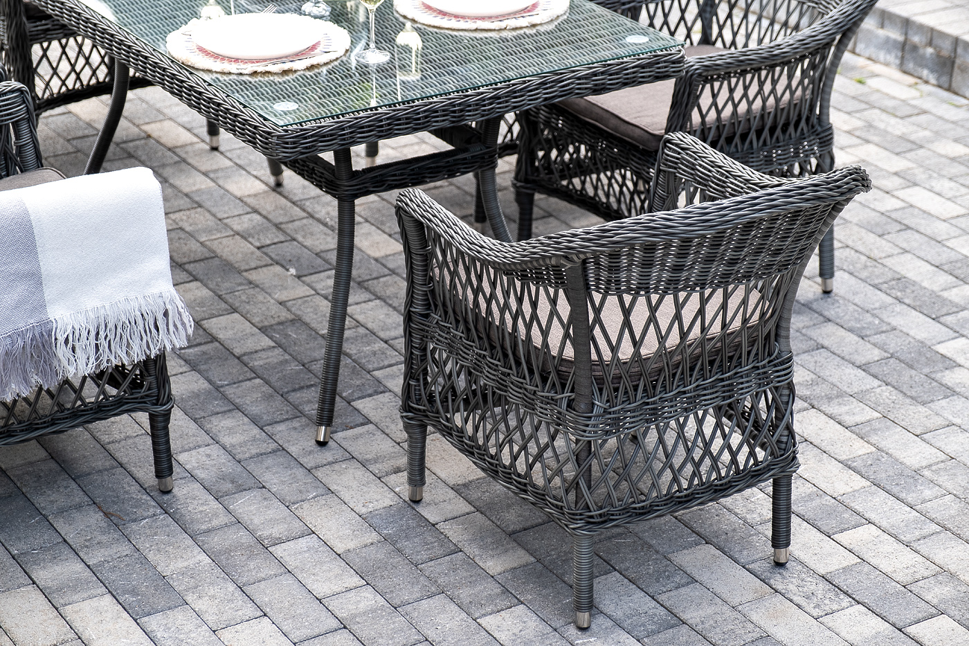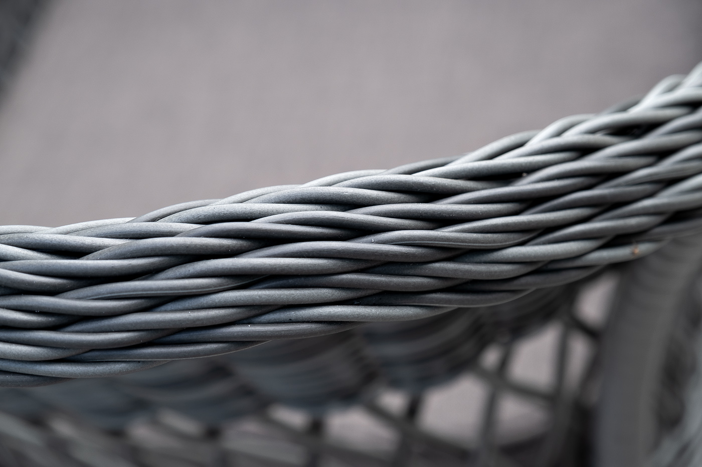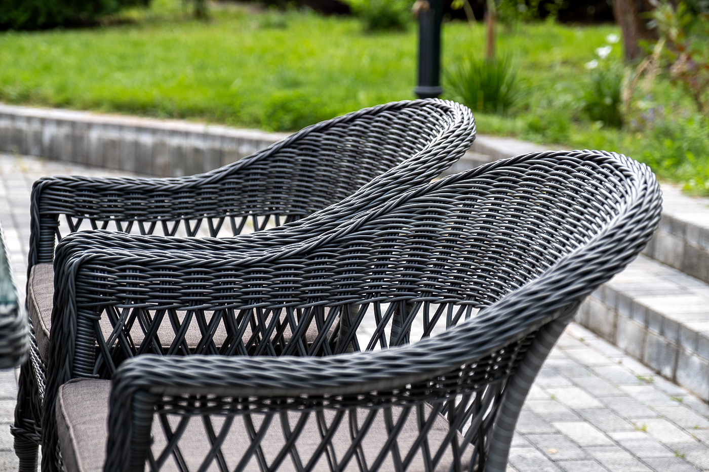 Алюминий используется при создании прочного каркаса мебели. Оформлен ручным плетением из круглого искусственного ротанга графитового цвета.