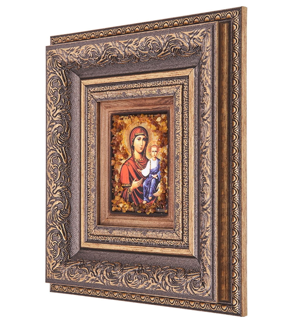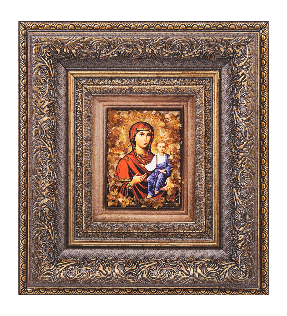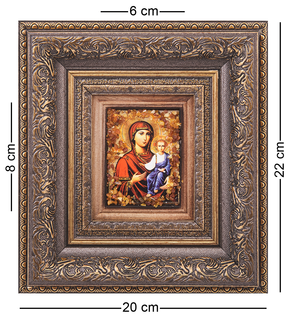 AMB-05/ 5 Икона Божией Матери «Смоленская» (с янтарной крошкой) H-22см