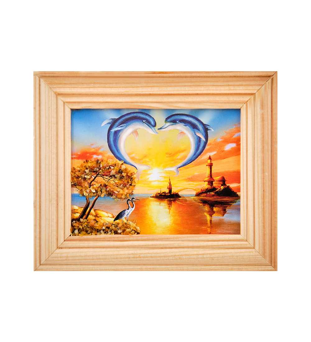 AMB-55/36 Картина «Дельфины» (с янтарной крошкой) дер.рамка 7х9