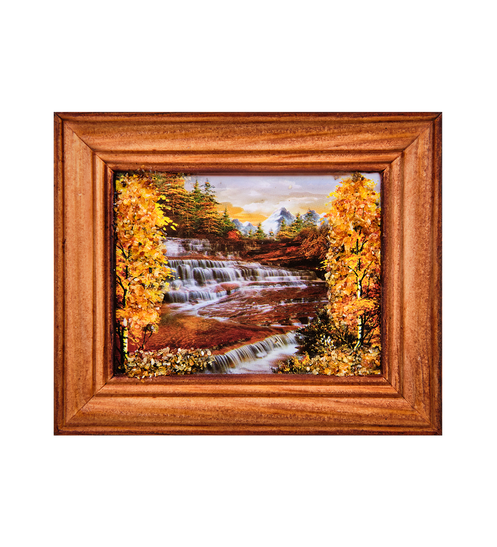 AMB-75/ 2 Картина «Каскад на реке» (с янтарной крошкой) дер.краш.рамка 7х9