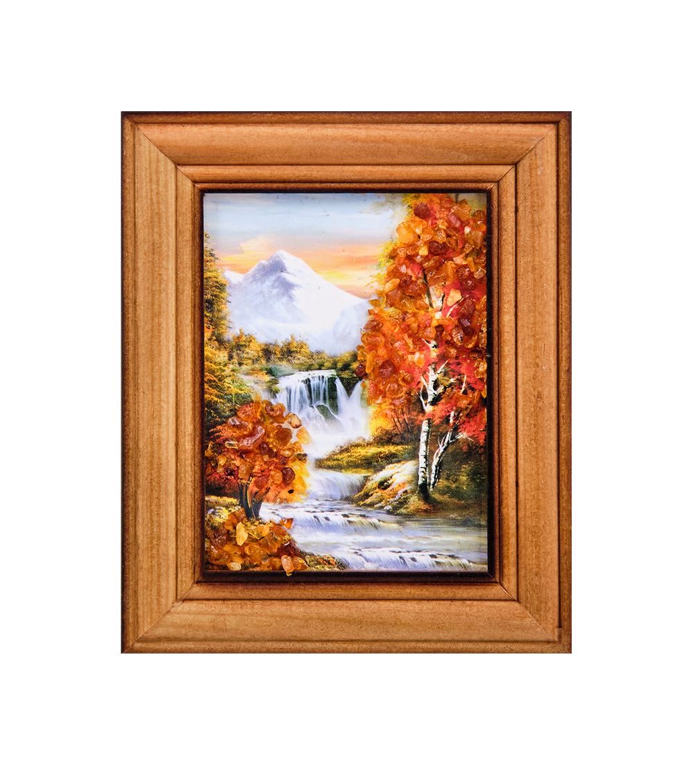 AMB-75/ 4 Картина «Водопад» (с янтарной крошкой) дер.краш.рамка 7х9