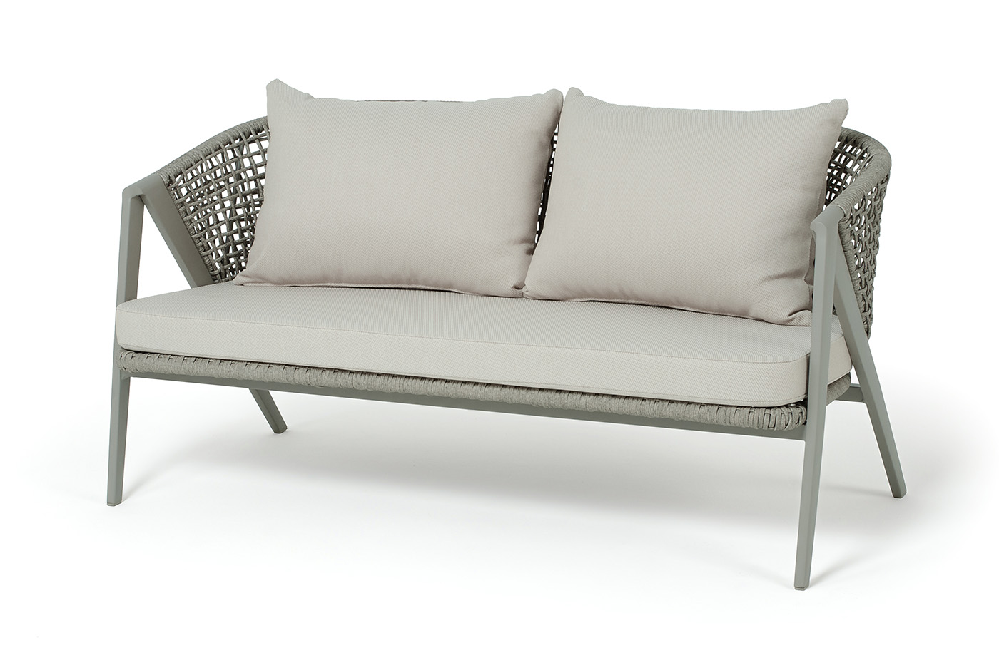 Диван выполнен из алюминиевого каркаса, который вручную оплетен круглым искусственным ротангом. Приятный на ощупь и напоминает шерстяное плетение.