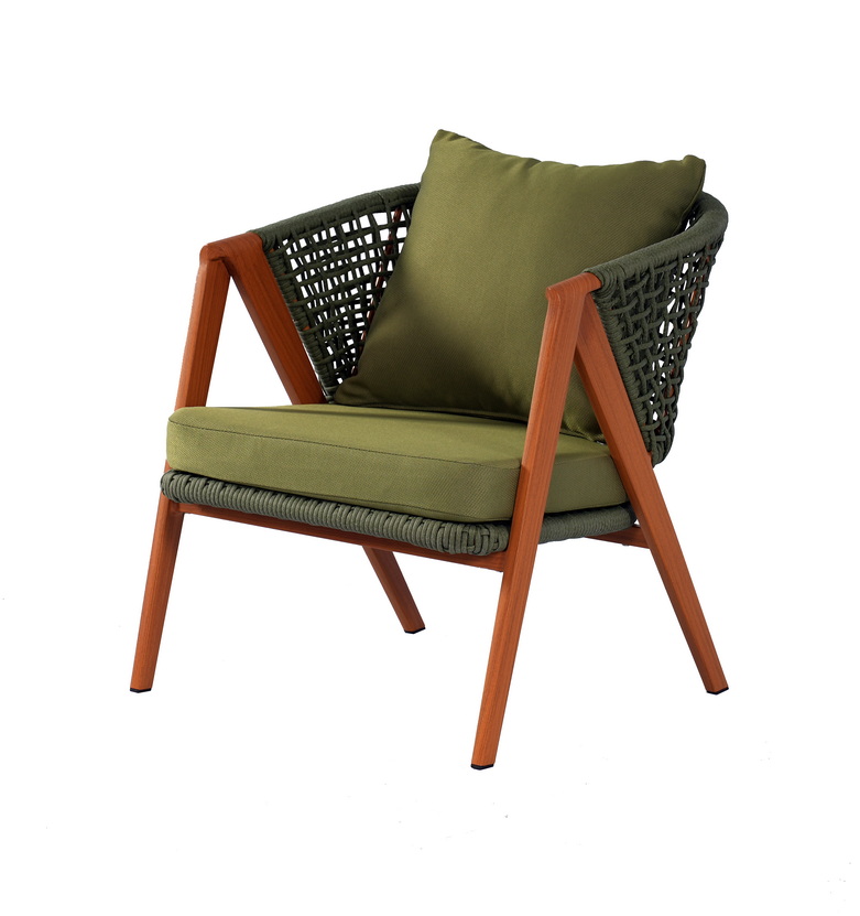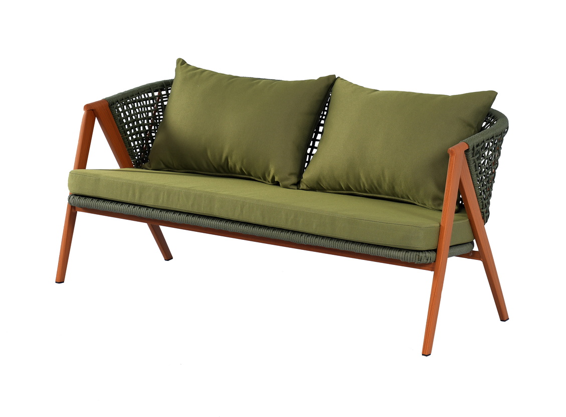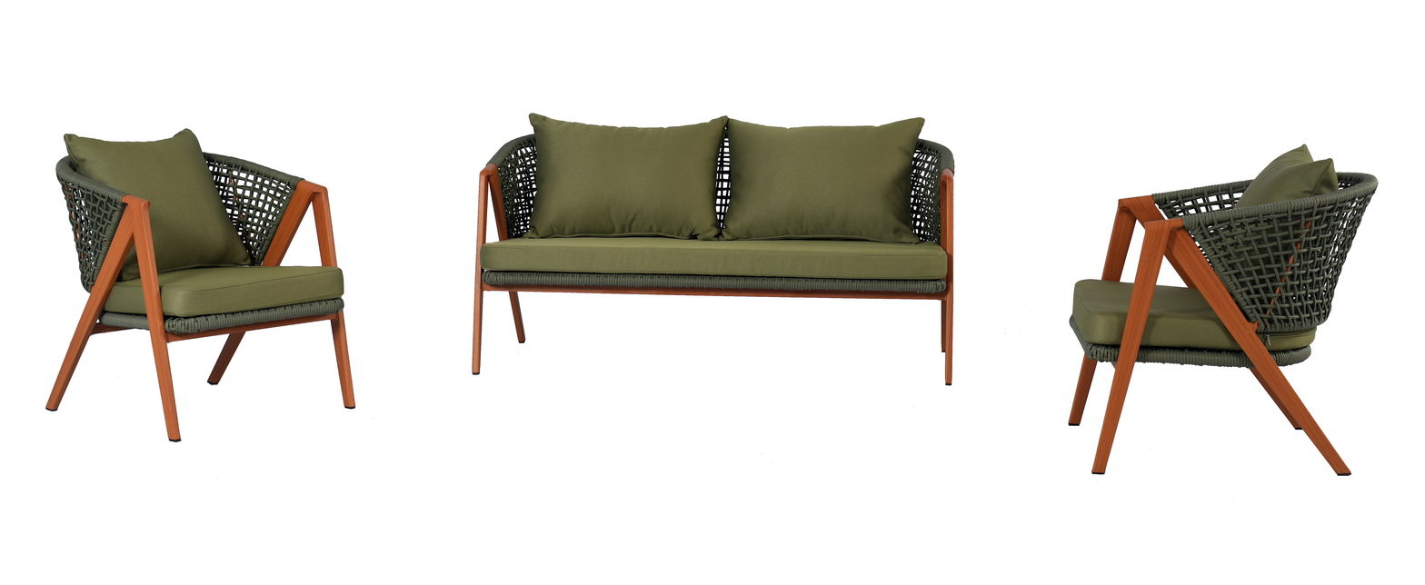Диван и кресла созданы с использованием алюминиевого каркаса, отделанного в стиле «под дерево». Особенностью модели является ручное оплетение каркаса круглым искусственным ротангом зелёного оттенка, который приятно ощущается на ощупь и напоминает шерстяное плетение. Для защиты напольного покрытия ножки оснащены чёрными пластиковыми заглушками.
