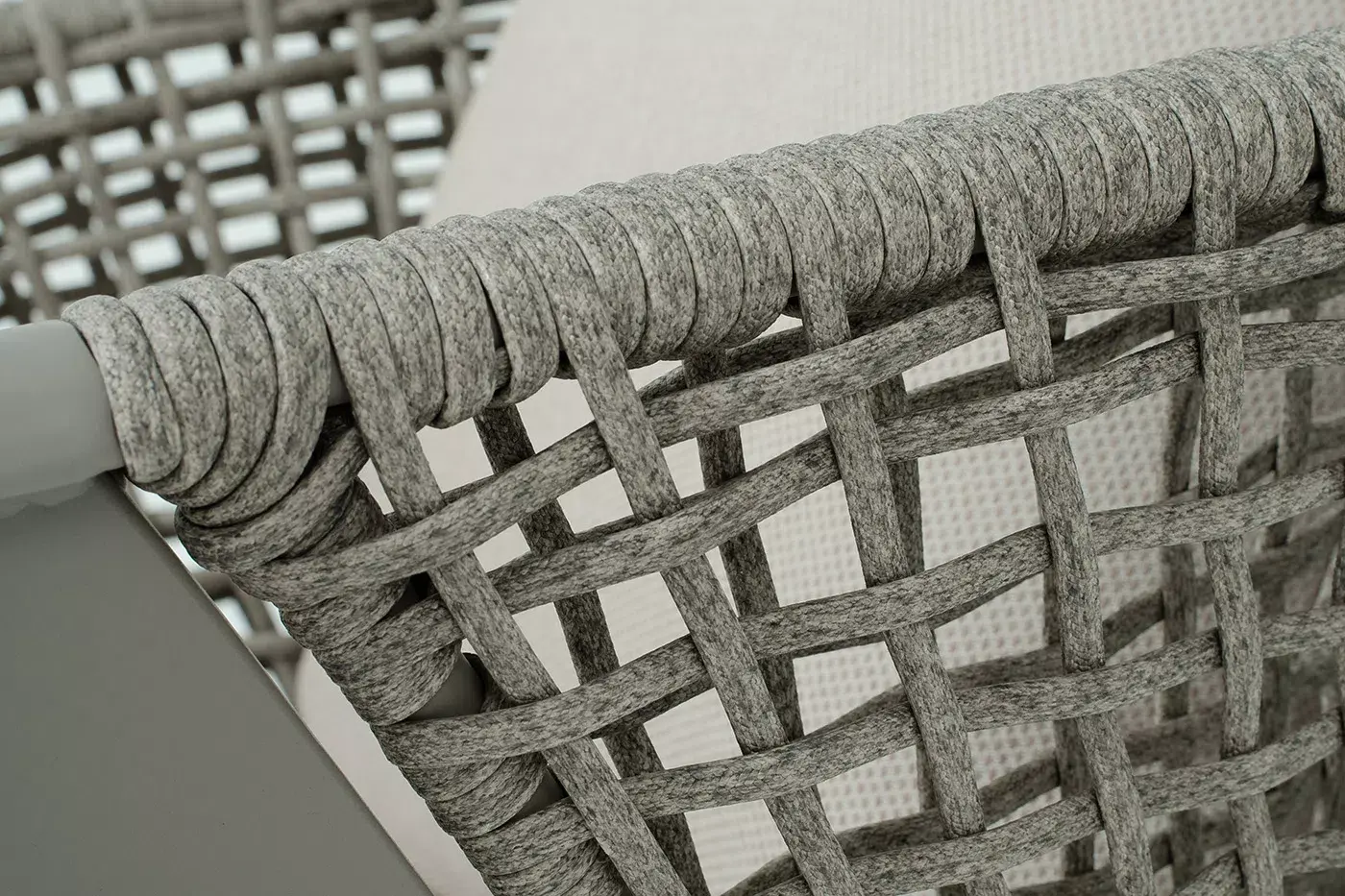 Изготовлен из алюминиевого каркаса, оплетенного вручную эластичными синтетическими лентами из высокопрочных полиэфирных волокон. Роуп является гипоаллергенным, прочным, износостойким и устойчивым к ультрафиолету. Приятный на ощупь и напоминает шерстяное плетение.