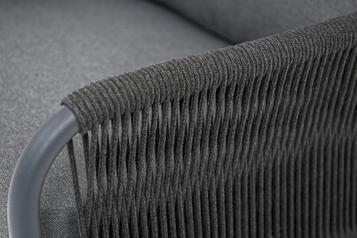 Темно-серый (RAL7024) цвет каркаса и плетения придают продукту элегантный и современный вид, который легко впишется в любой экстерьер. Порошковая износостойкая краска гарантирует сохранение яркости цвета и защиту от ржавчины.