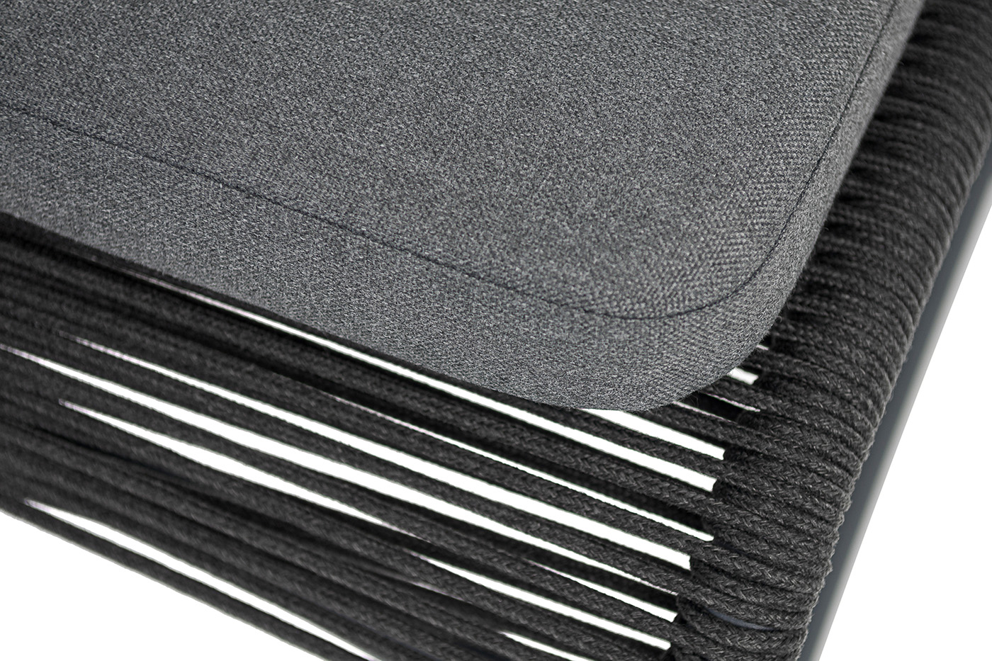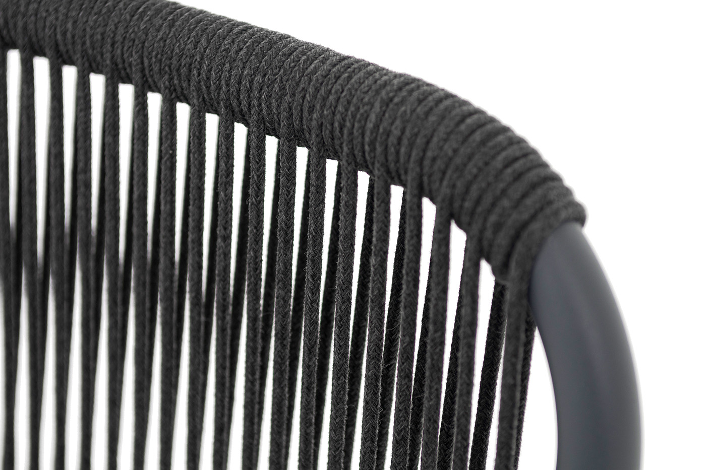 Выполнен из алюминиевого каркаса темно-серого (RAL7024) цвета. Оплетка - современный материал «роуп», которым каркас оплетался вручную.