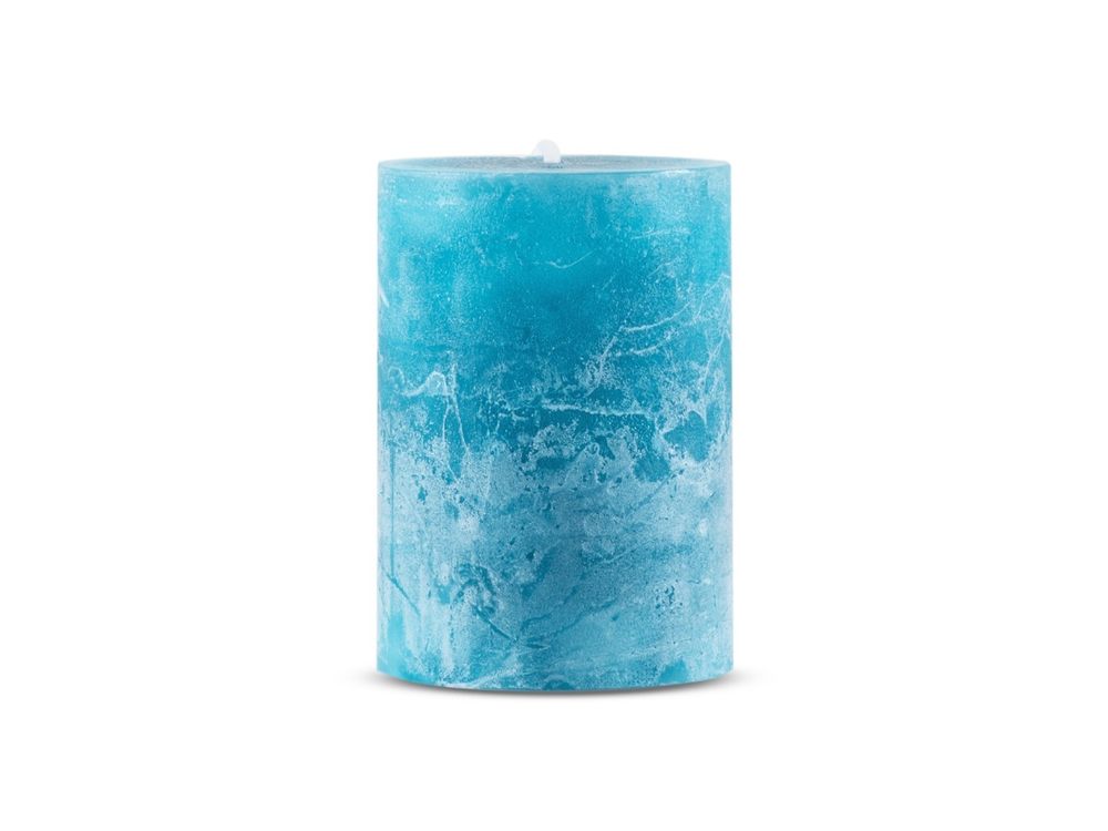 Свеча парафиновая небесного цвета с тонким ароматом.