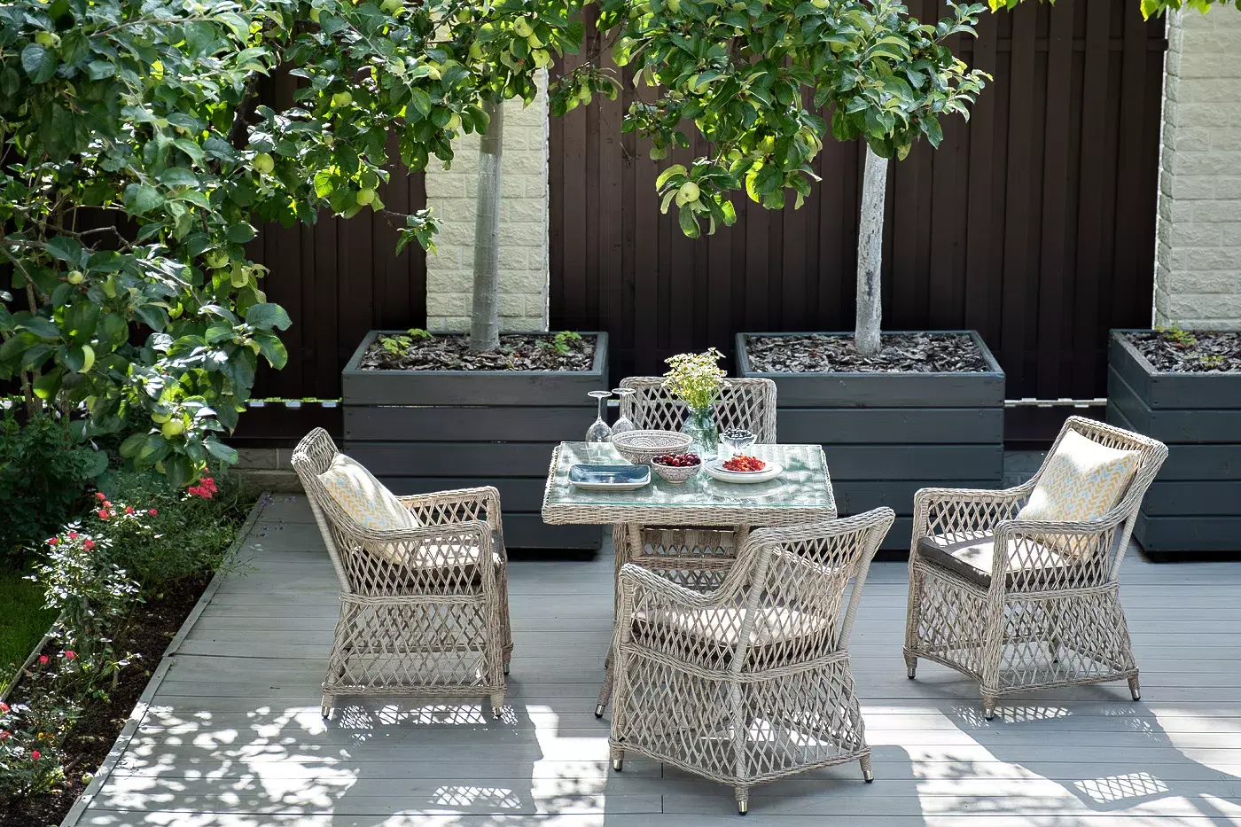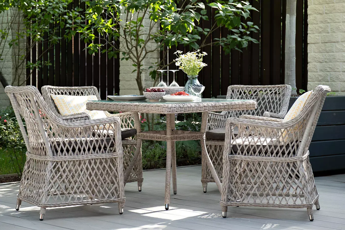 В комплект к стульям предусмотрены подушки со съёмными чехлами, которые обработаны влагоотталкивающими пропитками.