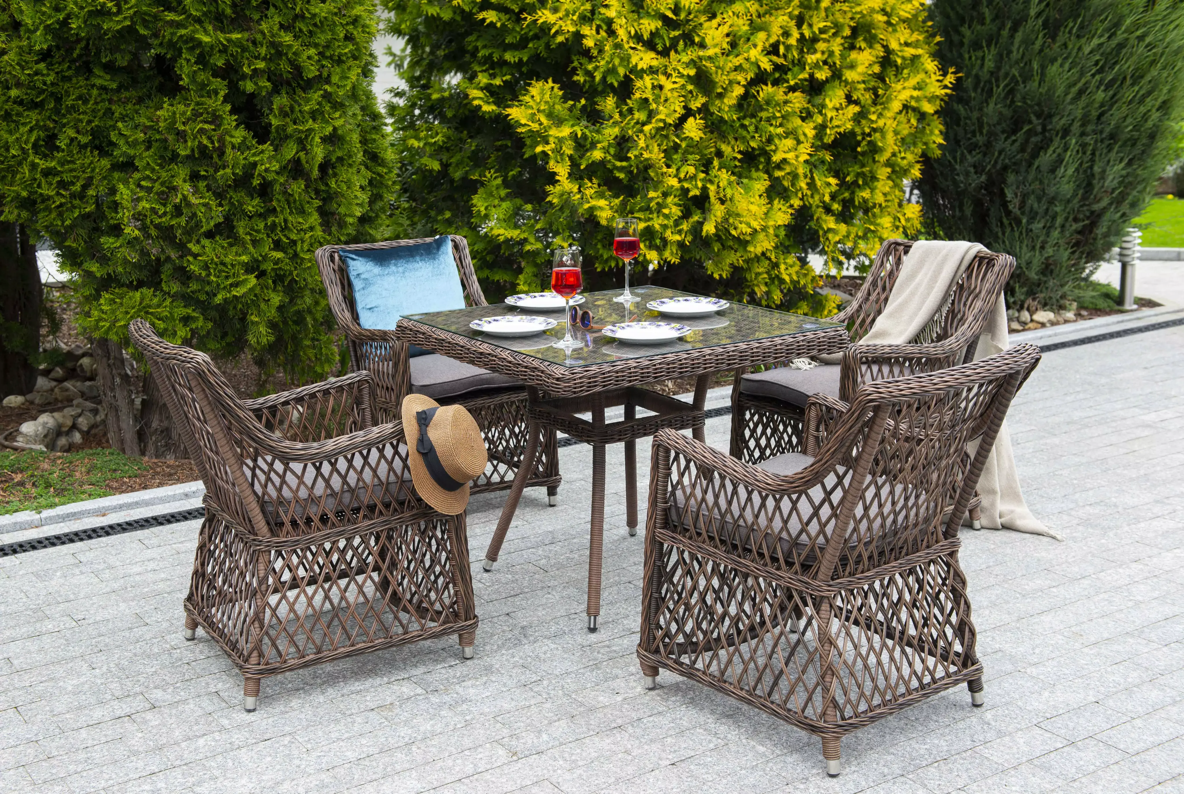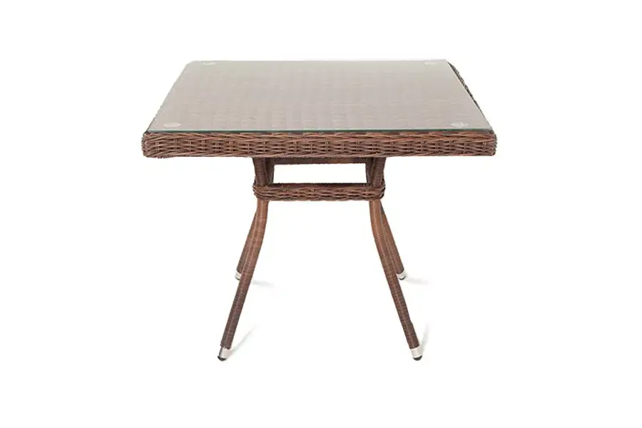 Плетеный квадратный столик «Айриш» изготовлен из легкого, но устойчивого к деформациям алюминия, вручную оплетенного искусственным ротангом насыщенного шоколадного оттенка.