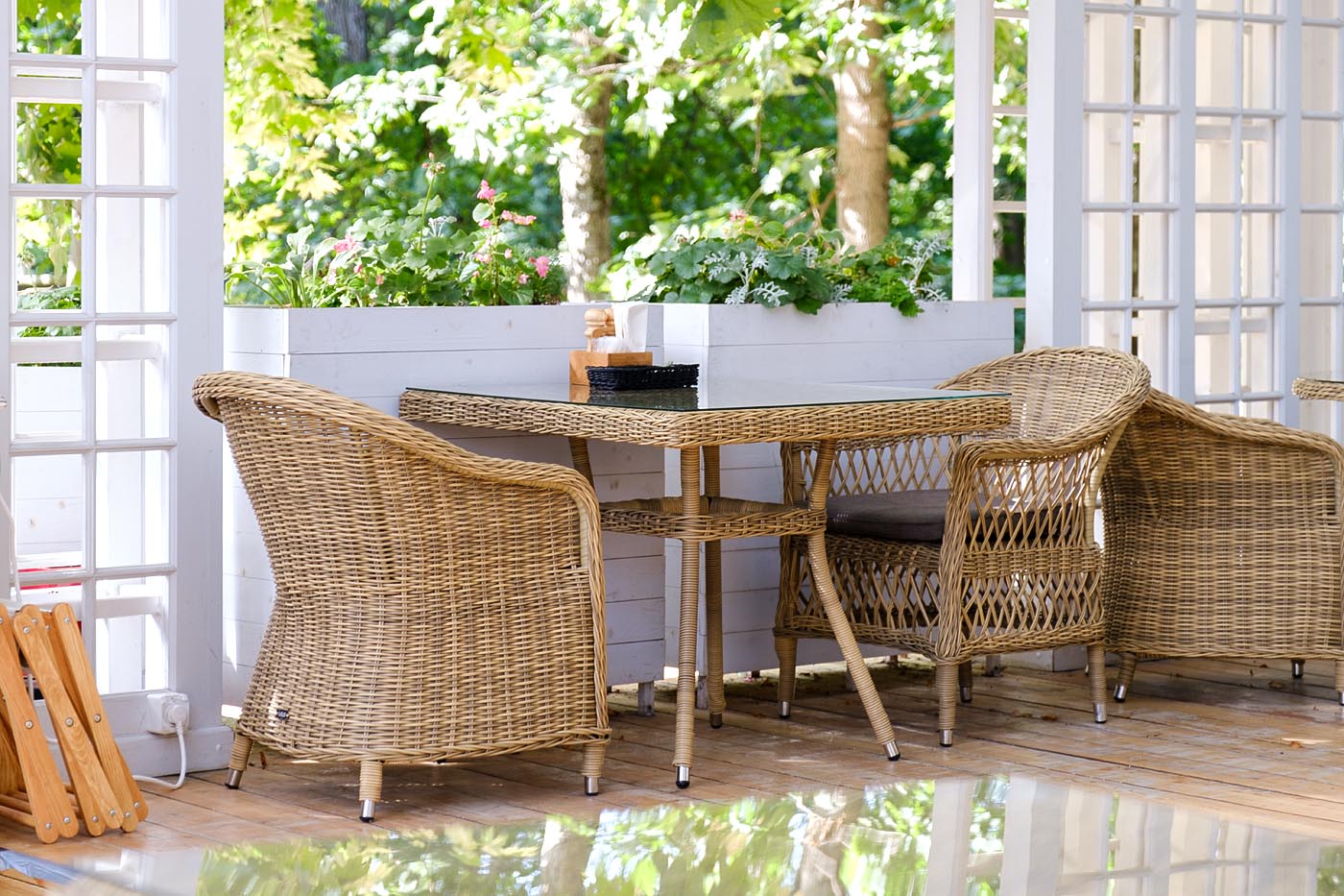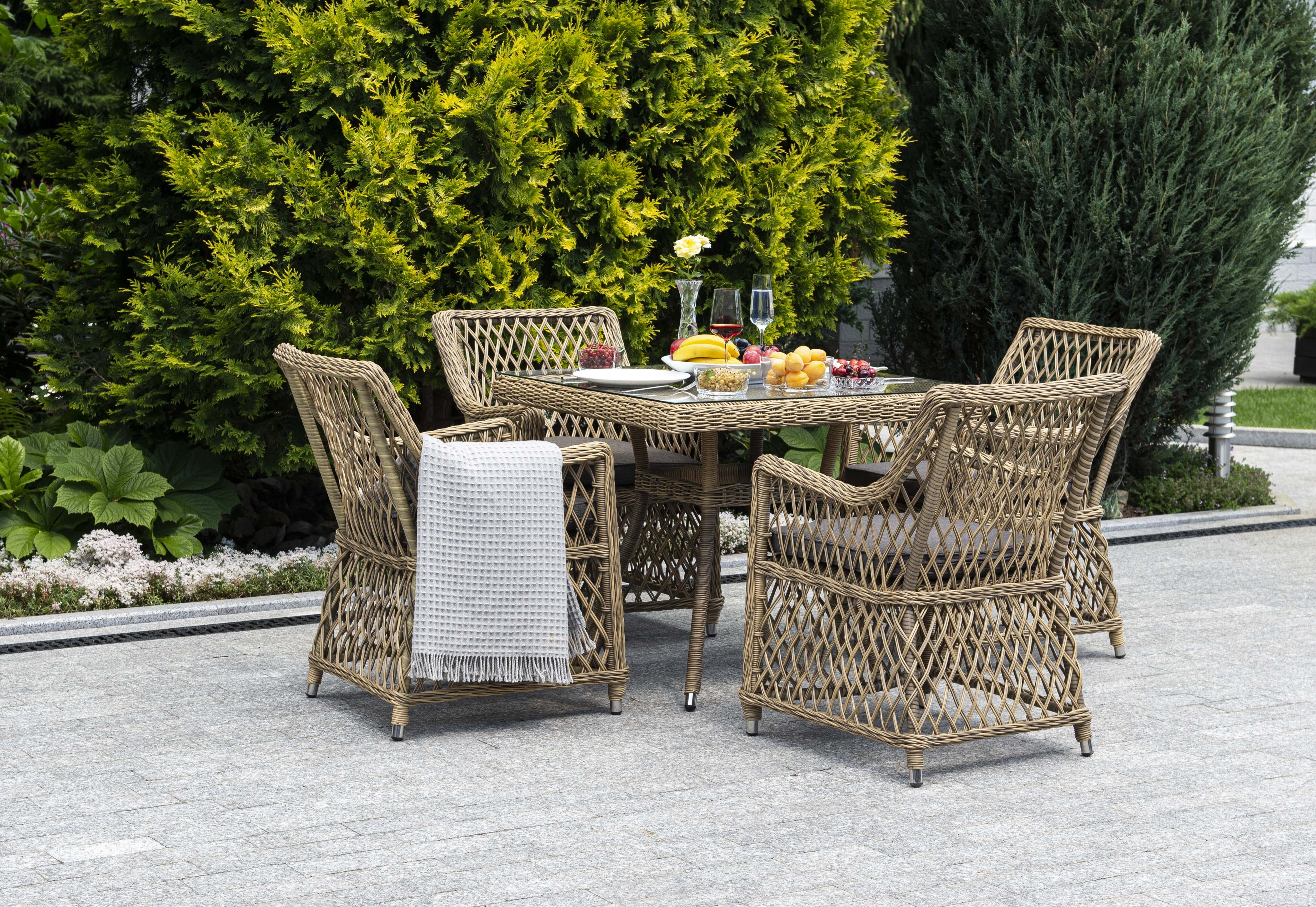 Плетеный садовый стол «Айриш» для обустройства обеденной зоны на открытом пространстве.