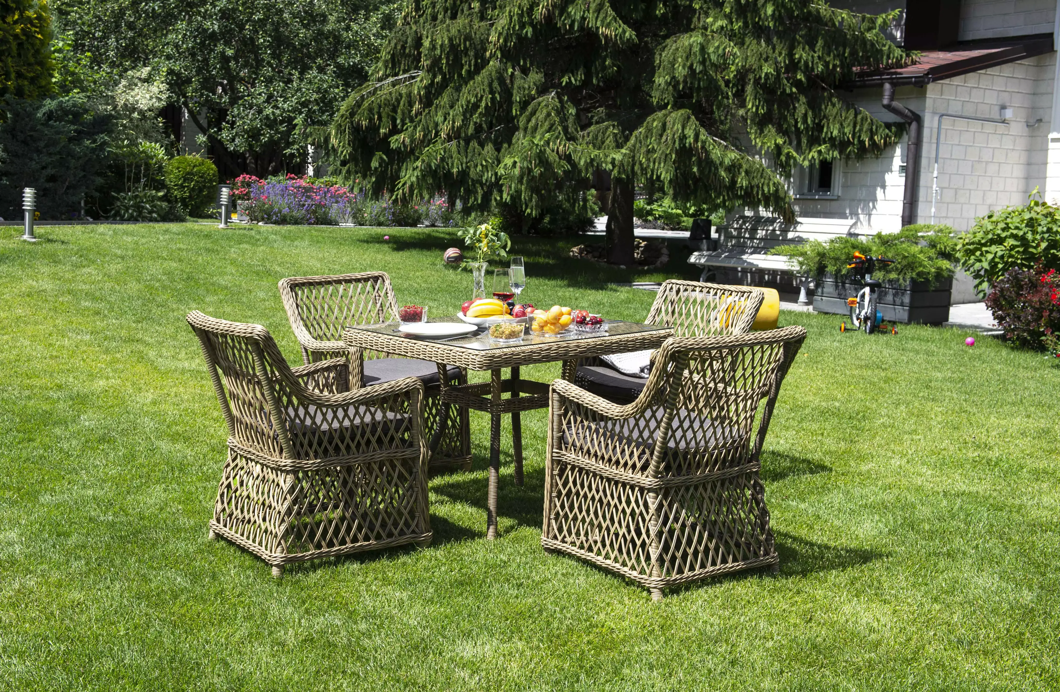Плетеный садовый стол «Айриш» для обустройства обеденной зоны на открытом пространстве.