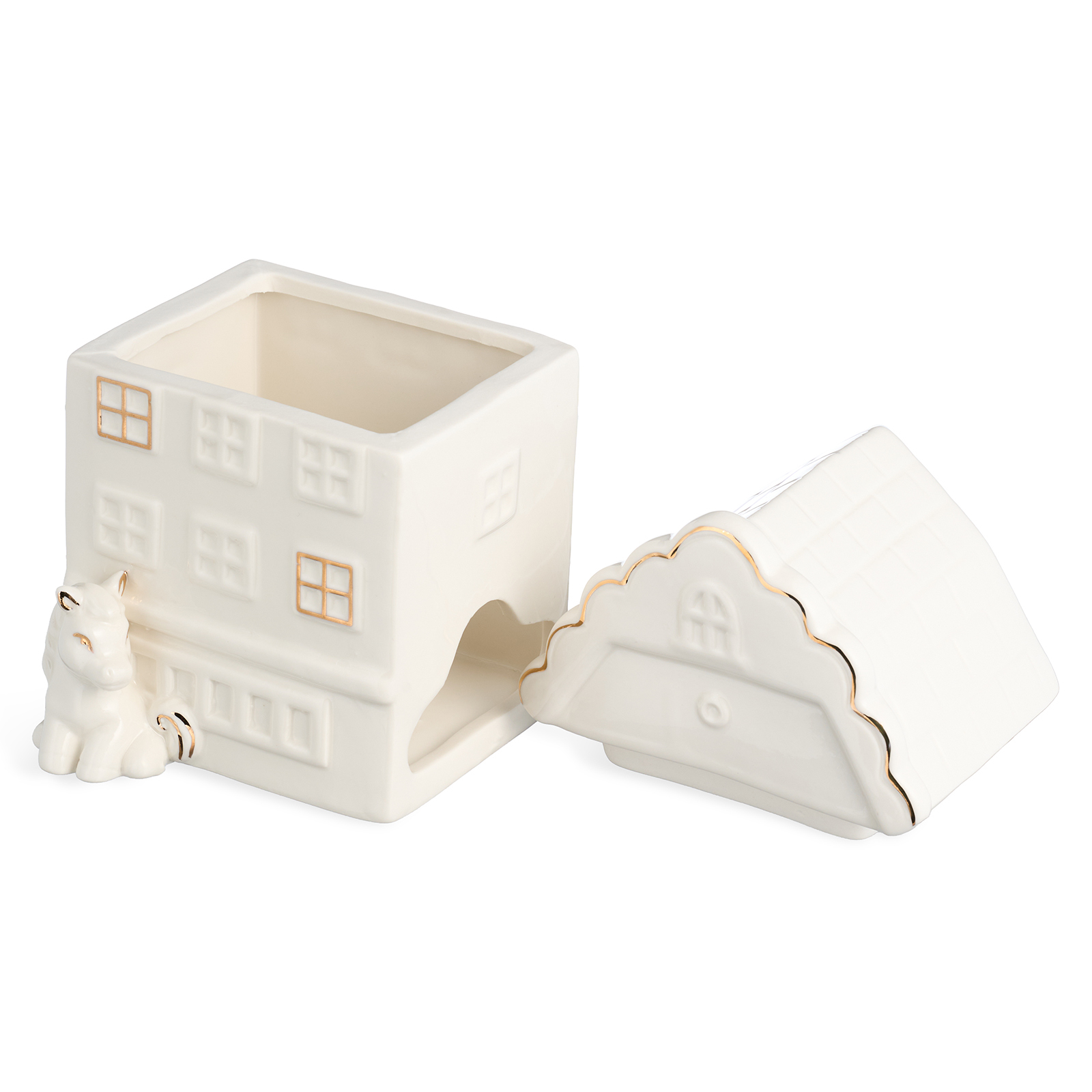 Пусть каждый ваш чайный ритуал начинается с волшебства! Эта изысканная фарфоровая банка в форме очаровательного домика станет не просто органайзером для чайных пакетиков — она превратит вашу кухню или столовую в уголок уюта и сказки.