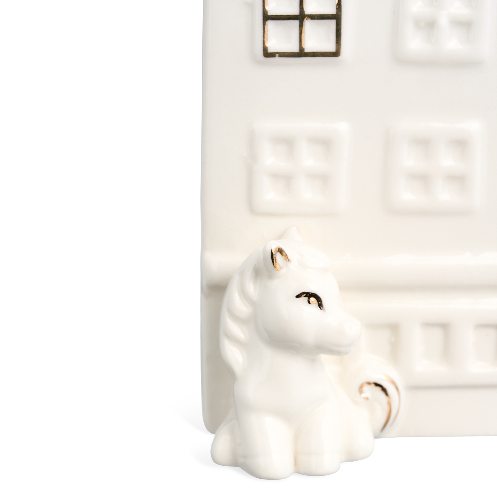 - Милый фарфоровый единорог у основания — символ мечты и доброты, который словно охраняет ваш чай;