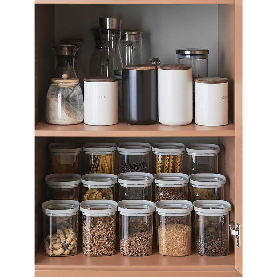 Банка для хранения квадратная Vacuum Glass, 1 л, светло-серая