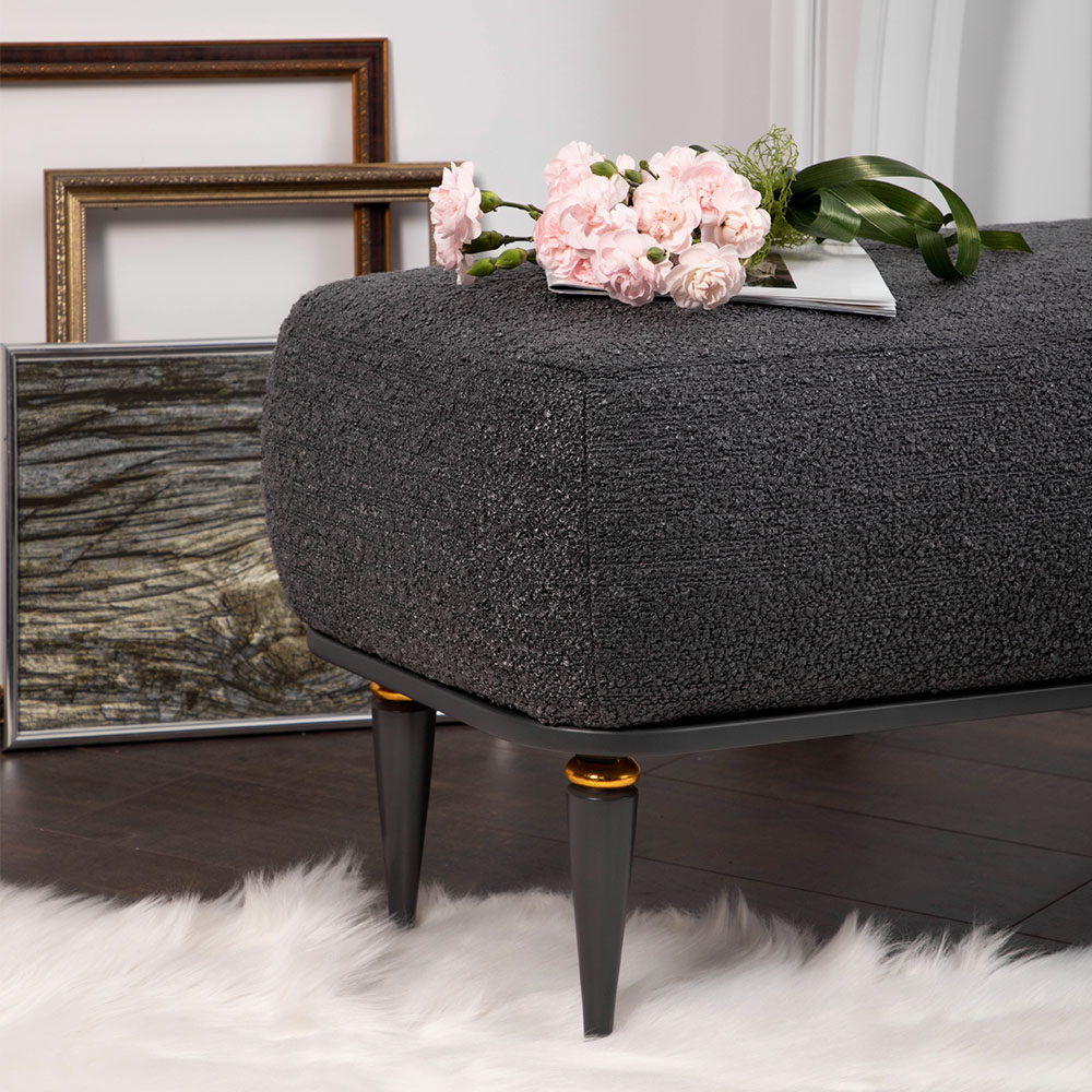 Пуф - поистине царское украшение вашего дома. Произведен вручную российской фабрикой мебели BOGACHO. Банкетка - оригинальный предмет интерьера, способный выполнять самые разные задачи. Придать пространству аутентичности и креативности, роскоши и современного шика возможно с помощью одной лишь интерьерной детали. Мягкий пуфик для дома и для дачи - это прекрасное дополнение к туалетному столику, диванчик для прихожей или замена прикроватной тумбе. Можно использовать его как прикроватный пуф для ног во время просмотра кинофильма или поставить в гардеробную как функциональный аксессуар. Используйте как мебель для гостиной, на нем удобно расположить ноутбук. Словом, эта универсальная вещь может быть хоть табуретом, хоть предметом декора - такая мебель малых форм подстроится под нужды хозяина, не утяжеляя пространство.Цветовая гамма представлена в ассортименте, это позволит с легкостью подобрать скамейку под любой интерьер. Можно купить пуфик для гостиниц, отелей, салонов красоты, загородных домов, коттеджей. Он украсит интерьер и станет незаменимой мебелью для полной комплектации как квартир, так и номеров.Компактная табуретка изготовлена из высококачественных материалов и мебельной фурнитуры, а мягкая обивка стула не проминается под тяжестью веса и сохраняет свою форму за счет мебельного пенополиуретана.Изделие приходит в собранном виде и не требует последующей сборки. Любите, чтобы интерьер был в едином стиле? Присмотритесь к продукции BOGACHO, которая будет гармонично сочетаться друг с другом.