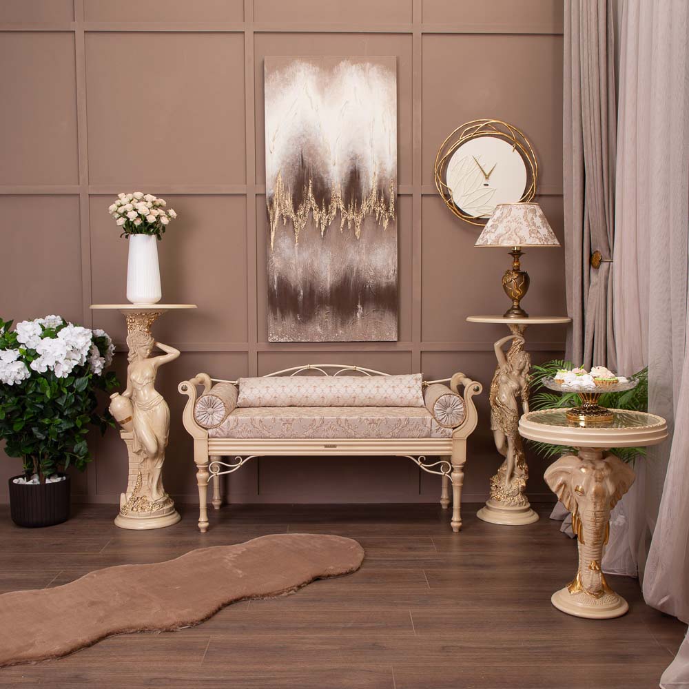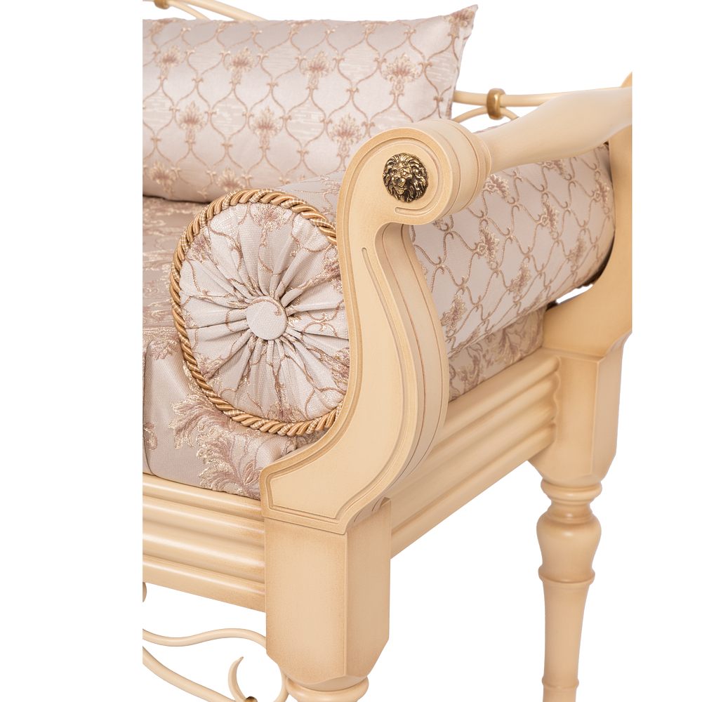 Атрибут высшего света. Вообразите залу в 80 аршин длины, для освещения которой понадобилось семь тысяч свечей! Представьте тысячу благородных особ, созванных на бал графиней Анною Алексеевною Орловою-Чесменскою. Там, в этой роскошной зале, присела на элегантную банкетку хорошенькая mademoiselle, от который не отводит взгляд статный офицер с серебряной табакеркой в руках. Сегодня, когда утихнет музыка и потухнут свечи, он сделает ей предложение. Они будут счастливы. Эта история со счастливым концом! В духе аристократизма. Тот самый аристократический дух, которым была славна ушедшая эпоха, никуда не делся, он по-прежнему живет в некоторых из нас, потому что заложен на генетическом уровне вместе с чувством стиля, тягой к утонченности, красоте. Эта банкетка создана специально для тех, кто считает себя новым русским аристократом. Качество, которое вас поразит. Банкетка выполнена лучшими специалистами компании BOGACHO вручную. Грациозный вид изделию придают выточенные ножки, удобно выгнутые подлокотники, мягкое сиденье, подушки - валики по бокам. Каркас банкетки изготовлен из массива бука. Посадочное место, основа - мебельная фанера из берёзы, в качестве наполнителя сиденья и подушек используется пенополиуретан, отделка - европейские ткани. Фасады декорированы позолоченными мраморными медальонами с изображением львов. Высота от пола до сиденья - 49 см.
