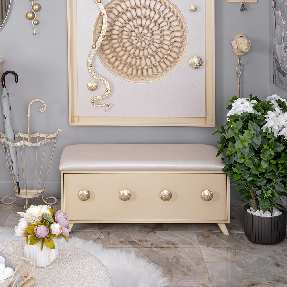 Стильная мебель Банкетка Heri - сочетание безупречной гармонии простоты, утонченности, комфорта и безупречного стиля. Как предмет мебели она призвана выполнять несколько важных функций. Во-первых, служить местом, позволяющим присесть и комфортно обуться. Во-вторых, обеспечить хранение вещей или обуви. И, наконец, выполнять эстетическую функцию, являться элементом декора.