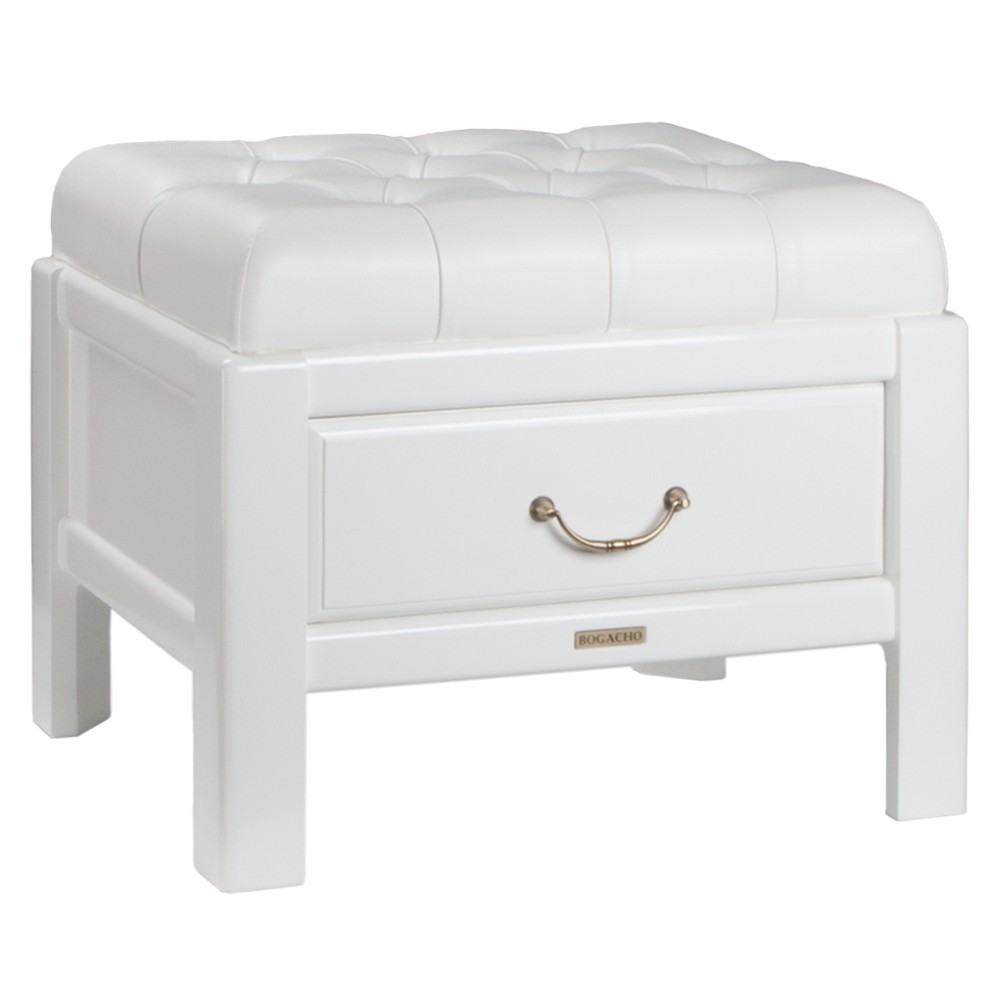 Одноместная банкетка с выдвижным ящиком. Особенностью коллекции является классическая техника капитоне, представленная в декоре посадочного места. Изделие отличается прочной устойчивой конструкцией и прослужит не один год! Материалы изготовления и размеры изделияКаркас банкетки выполнен из массива бука. Фасады из МДФ, облицованного ламинированной пленкой. Посадочное место, основа - мебельная фанера из берёзы, в качестве наполнителя используется пенополиуретан, отделка искусственная кожа или натуральная кожа. Фурнитура из латуни испанского производства.