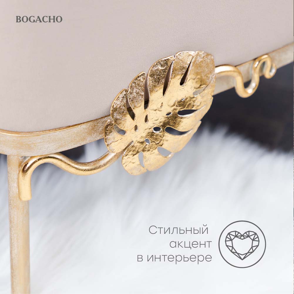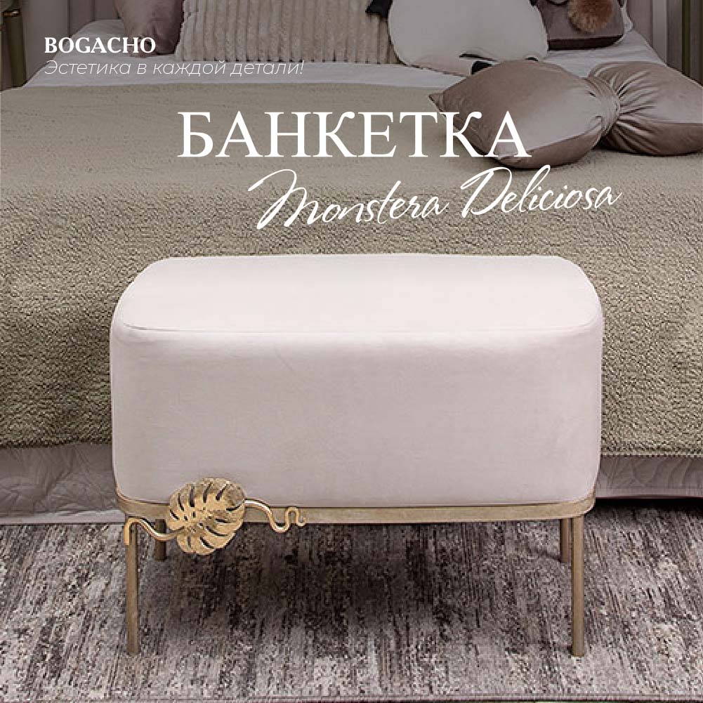 Банкетка - поистине царское украшение вашего дома. Произведена вручную российской фабрикой мебели BOGACHO. Это оригинальный предмет интерьера, способный выполнять самые разные задачи. Банкетка придаст пространству аутентичности и креативности, роскоши и современного шика. Мягкий пуфик для дома и для дачи - это прекрасное дополнение к туалетному столику, диванчик для прихожей или замена прикроватной тумбе. Можно использовать его как прикроватный пуф для ног во время просмотра кинофильма или поставить в гардеробную как функциональный аксессуар. Словом, эта универсальная вещь может быть хоть табуретом, хоть предметом декора - такая мебель малых форм подстроится под нужды хозяина, не утяжеляя пространство.Пуф удачно впишется в любой декор. Цветовая гамма представлена в ассортименте, это позволит с легкостью подобрать скамейку под любой интерьер.Компактная табуретка изготовлена из высококачественных материалов и мебельной фурнитуры, а мягкая обивка стула не проминается под тяжестью веса и сохраняет свою форму за счет мебельного пенополиуретана.Изделие приходит в собранном виде и не требует последующей сборки.Любите, чтобы интерьер был в едином стиле? Присмотритесь к продукции BOGACHO, которая будет гармонично сочетаться друг с другом.