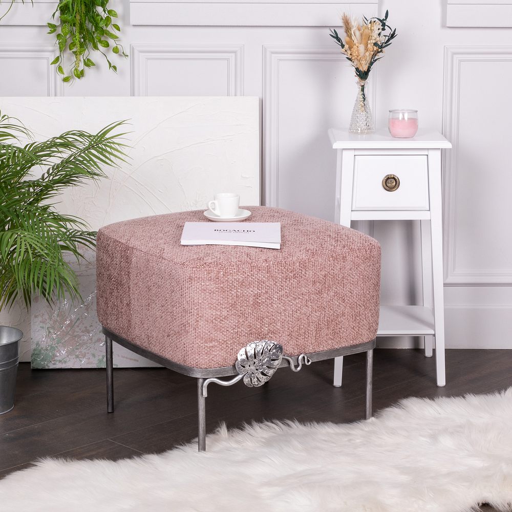 Банкетка Monstera Deliciosa (Монстера) Квадро Фламинго Античное серебро