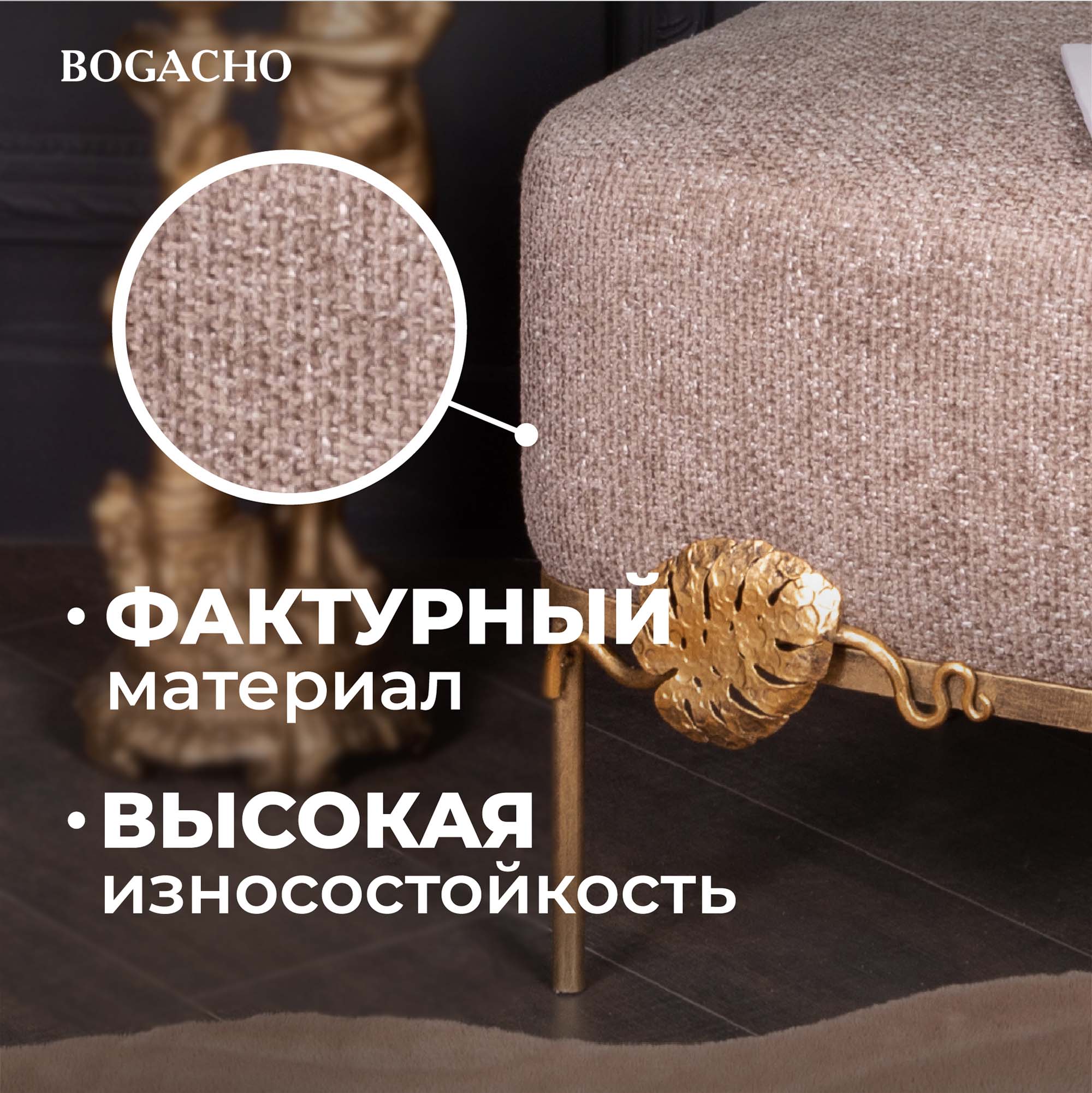 Банкетка - поистине царское украшение вашего дома. Произведен вручную российской фабрикой мебели BOGACHO. Скамья оригинальный предмет интерьера, способный выполнять самые разные задачи. Придать пространству аутентичности и креативности, роскоши и современного шика, в спальне, в прихожей, в коридоре или гостиной, в детской, в зале, на кухне - все это возможно осуществить с помощью одной лишь интерьерной детали. Мягкий пуфик для дома и для дачи - это прекрасное дополнение к туалетному столику, диванчик для прихожей или замена прикроватной тумбе. Можно использовать его как прикроватный пуф для ног во время просмотра кинофильма или поставить в гардеробную как функциональный аксессуар. Используйте как мебель для гостиной, на нем удобно расположить ноутбук. Словом, эта универсальная вещь может быть хоть табуретом, хоть предметом декора - такая мебель малых форм подстроится под нужды хозяина, не утяжеляя пространство.Любите, чтобы интерьер был в едином стиле? Присмотритесь к продукции BOGACHO, которая будет гармонично сочетаться друг с другом.