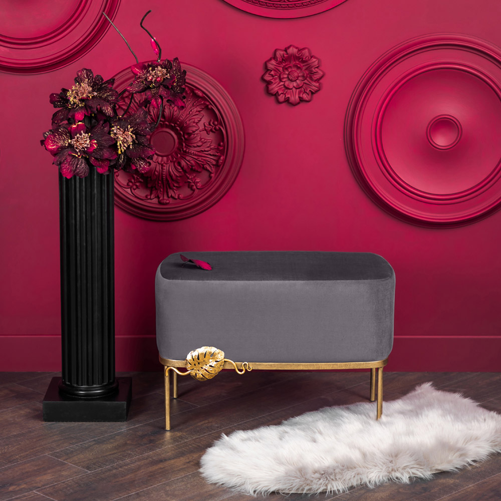 Банкетка Monstera Deliciosa (Монстера) Серая Амбер