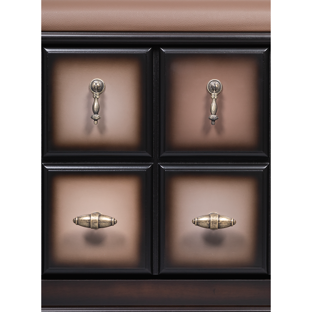 Красиво, качественно и надежноБанкетка «Пандора - 4» отличает утонченный декор фасадов, латунная фурнитура испанского производства, качественные направляющие, максимально практичная и надежная обивка - европейские ткани, удобная и вместительная обувница. Все это способно в полной мере удовлетворить запросы самых искушенных и требовательных потребителей.