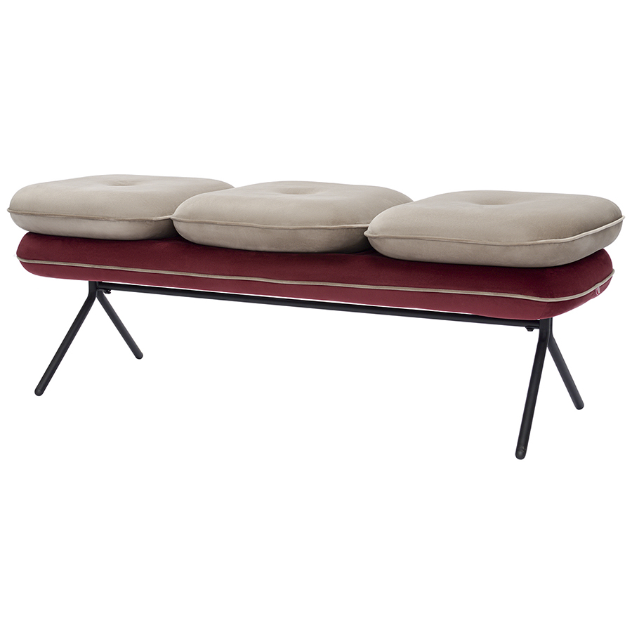Материалы: 100% полиэстер, пенополиуретан, фанера, железо. Размеры: 123,9х43,1х42,9 см. Истираемость ткани по шкале Мартиндейла: 40000. Цвет: бежевый/бордовый. Максимальная нагрузка – 150 кг.