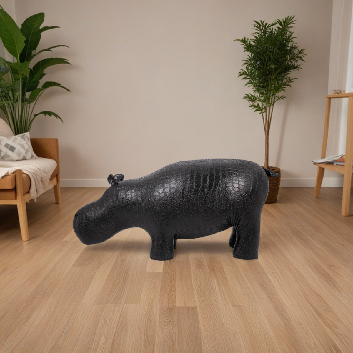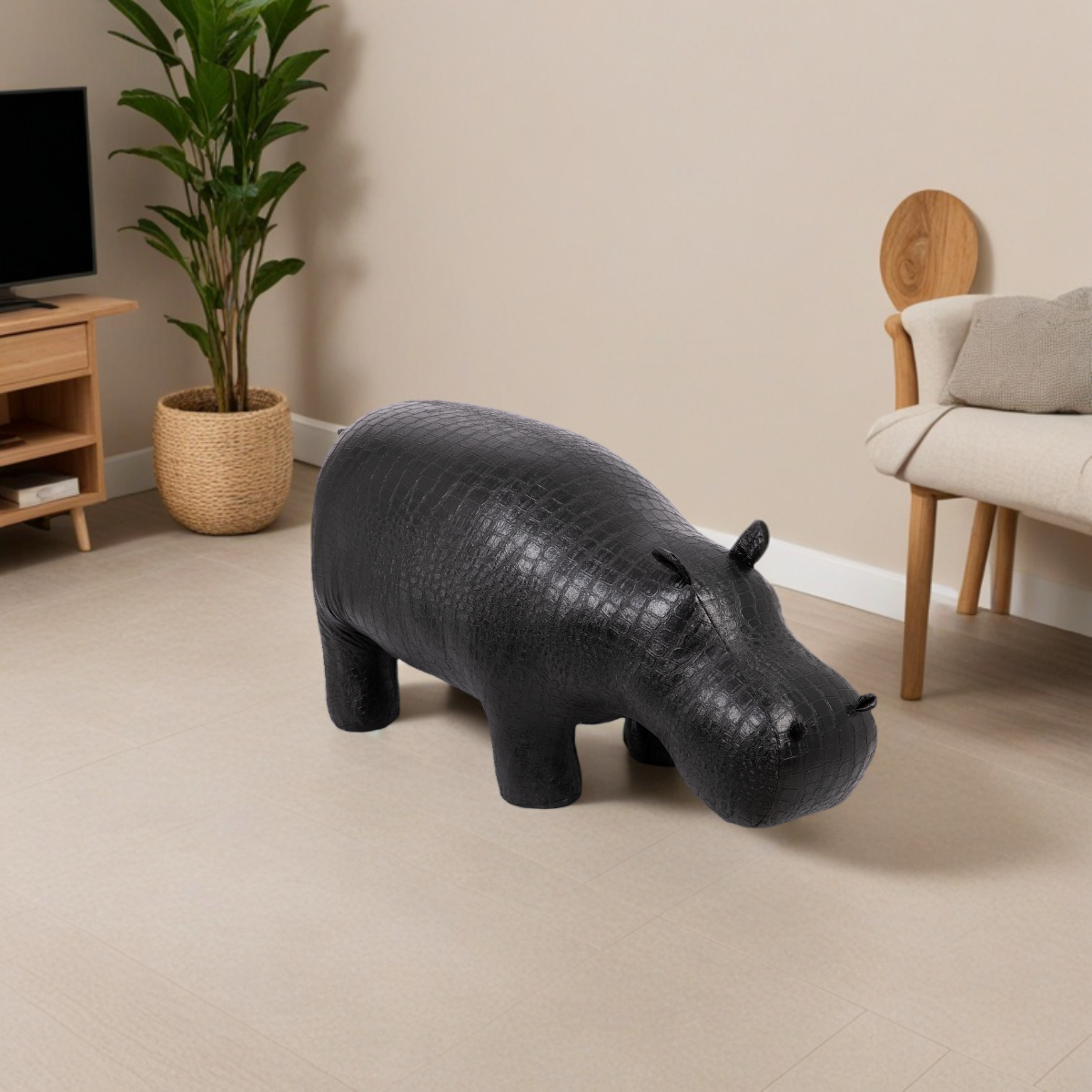 Уникальный бегемот. Этот бегемот уже стал легендой BOGACHO. Создав его, дизайнеры компании задали настоящий тренд на подобные предметы мебели. "Пуф Бегемот" - вещь оригинальная, позволяющая выйти за рамки обыденности, внести новый и неожиданный штрих не только в обстановку, но и в жизнь, заключенную, как это водится у деловых людей, в строгие рамки графиков, договоров, планов и схем. Уникальный дизайн и необычная форма пуфа позволят разместить его как в классических, так и в современных интерьерах. Терапия для взрослых. Мы выросли, стали большими, солидными и серьезными. У нас есть семья, карьера, деньги, статус, а вместе с ними ворох проблем и забот, за которыми не находится достаточно времени, чтобы по-настоящему наслаждаться жизнью, расслабиться. Садитесь на бегемота, и позвольте себе быть немного смешным и слегка беззаботным. Иногда чувствовать себя ребенком - это полезно, любой психолог вам это подтвердит! Делайте счастливыми других. Психологи также знают еще один важный секрет: нужно обязательно приносить счастье другим, тогда и твоя собственная жизнь расцветет яркими жизнерадостными красками. Поэтому "Пуф Бегемот" будет отличным подарком! Взрослым знакомым вы тем самым дадите возможность напитаться новыми положительными эмоциями, которые помогут снять стрессы и депрессии. И только представьте себе, сколько часов могут провести с бегемотом дети, лучшей и более необычной забавы представить сложно! Качественно. Превосходно. Безопасно. Пуф совершенно безопасен: округлые формы, мягкий обивочный материал вызывает только приятные тактильные ощущения. В банкетке используют металлокаркас обеспечивающий изделию прочность, благодаря чему он способен выдержать до 120 кг. веса. Пуф выполнен из экологически чистого заменителя кожи, благодаря чему материал «дышит», но при этом не пропускает влагу. В качестве наполнителя используют холлофайбер.