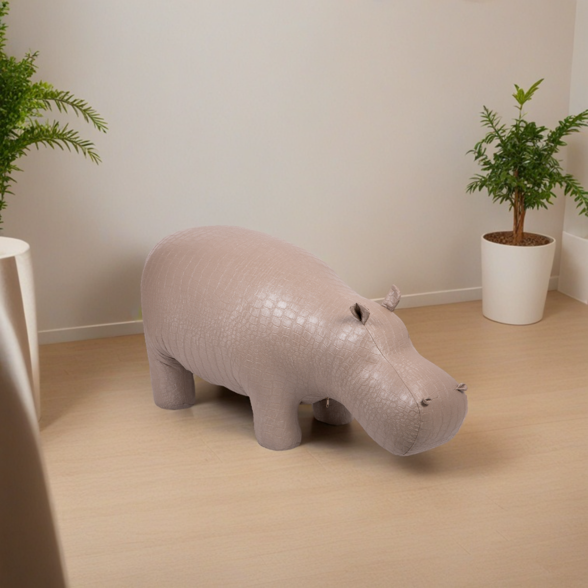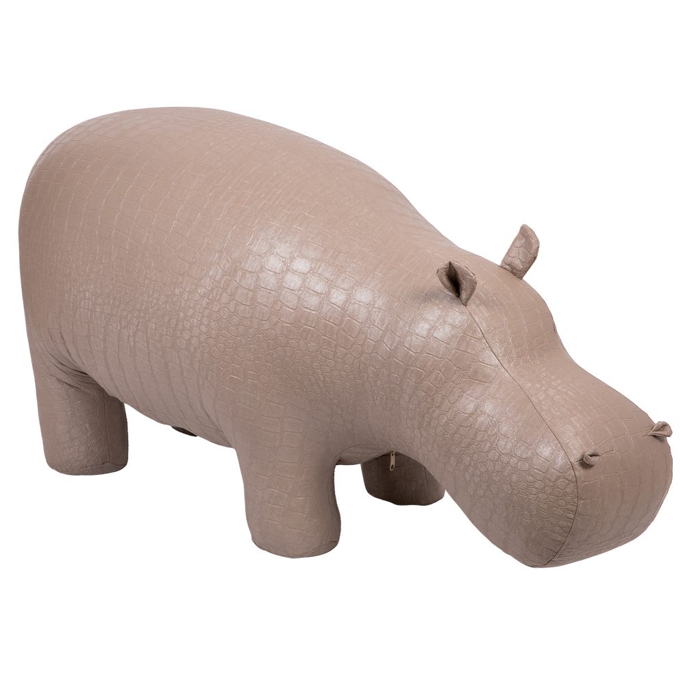 Уникальный бегемот. Этот бегемот уже стал легендой BOGACHO. Создав его, дизайнеры компании задали настоящий тренд на подобные предметы мебели. "Пуф Бегемот" - вещь оригинальная, позволяющая выйти за рамки обыденности, внести новый и неожиданный штрих не только в обстановку, но и в жизнь, заключенную, как это водится у деловых людей, в строгие рамки графиков, договоров, планов и схем. Уникальный дизайн и необычная форма пуфа позволят разместить его как в классических, так и в современных интерьерах. Терапия для взрослых. Мы выросли, стали большими, солидными и серьезными. У нас есть семья, карьера, деньги, статус, а вместе с ними ворох проблем и забот, за которыми не находится достаточно времени, чтобы по-настоящему наслаждаться жизнью, расслабиться. Садитесь на бегемота, и позвольте себе быть немного смешным и слегка беззаботным. Иногда чувствовать себя ребенком - это полезно, любой психолог вам это подтвердит! Делайте счастливыми других. Психологи также знают еще один важный секрет: нужно обязательно приносить счастье другим, тогда и твоя собственная жизнь расцветет яркими жизнерадостными красками. Поэтому "Пуф Бегемот" будет отличным подарком! Взрослым знакомым вы тем самым дадите возможность напитаться новыми положительными эмоциями, которые помогут снять стрессы и депрессии. И только представьте себе, сколько часов могут провести с бегемотом дети, лучшей и более необычной забавы представить сложно! Качественно. Превосходно. Безопасно. Пуф совершенно безопасен: округлые формы, мягкий обивочный материал вызывает только приятные тактильные ощущения. В банкетке используют металлокаркас обеспечивающий изделию прочность, благодаря чему он способен выдержать до 120 кг. веса. Пуф выполнен из экологически чистого заменителя кожи, благодаря чему материал «дышит», но при этом не пропускает влагу. В качестве наполнителя используют холлофайбер.