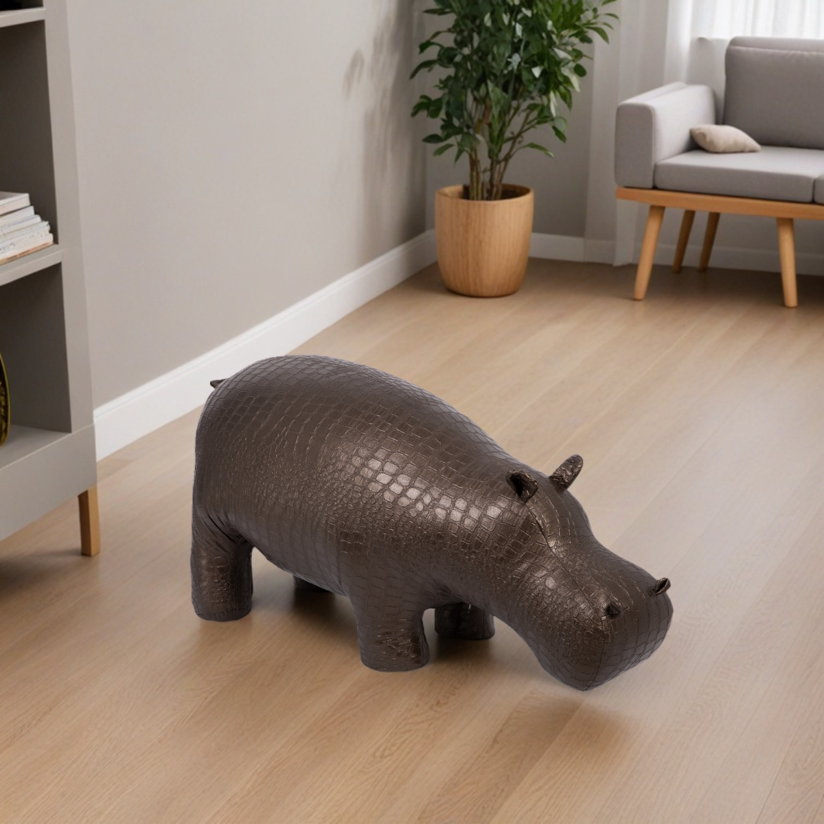 Уникальный бегемот. Этот бегемот уже стал легендой BOGACHO. Создав его, дизайнеры компании задали настоящий тренд на подобные предметы мебели. "Пуф Бегемот" - вещь оригинальная, позволяющая выйти за рамки обыденности, внести новый и неожиданный штрих не только в обстановку, но и в жизнь, заключенную, как это водится у деловых людей, в строгие рамки графиков, договоров, планов и схем. Уникальный дизайн и необычная форма пуфа позволят разместить его как в классических, так и в современных интерьерах. Терапия для взрослых. Мы выросли, стали большими, солидными и серьезными. У нас есть семья, карьера, деньги, статус, а вместе с ними ворох проблем и забот, за которыми не находится достаточно времени, чтобы по-настоящему наслаждаться жизнью, расслабиться. Садитесь на бегемота, и позвольте себе быть немного смешным и слегка беззаботным. Иногда чувствовать себя ребенком - это полезно, любой психолог вам это подтвердит! Делайте счастливыми других. Психологи также знают еще один важный секрет: нужно обязательно приносить счастье другим, тогда и твоя собственная жизнь расцветет яркими жизнерадостными красками. Поэтому "Пуф Бегемот" будет отличным подарком! Взрослым знакомым вы тем самым дадите возможность напитаться новыми положительными эмоциями, которые помогут снять стрессы и депрессии. И только представьте себе, сколько часов могут провести с бегемотом дети, лучшей и более необычной забавы представить сложно! Качественно. Превосходно. Безопасно. Пуф совершенно безопасен: округлые формы, мягкий обивочный материал вызывает только приятные тактильные ощущения. В банкетке используют металлокаркас обеспечивающий изделию прочность, благодаря чему он способен выдержать до 120 кг. веса. Пуф выполнен из экологически чистого заменителя кожи, благодаря чему материал «дышит», но при этом не пропускает влагу. В качестве наполнителя используют холлофайбер.