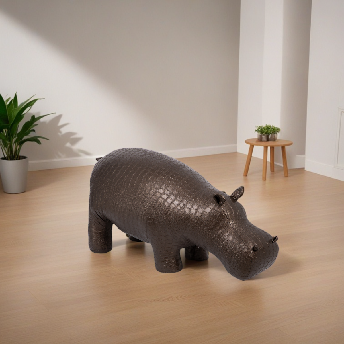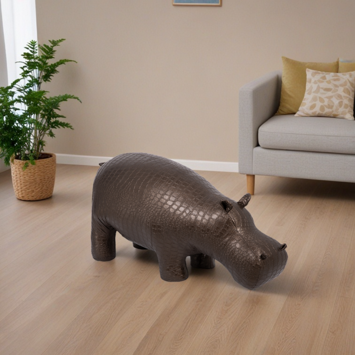 Уникальный бегемот. Этот бегемот уже стал легендой BOGACHO. Создав его, дизайнеры компании задали настоящий тренд на подобные предметы мебели. "Пуф Бегемот" - вещь оригинальная, позволяющая выйти за рамки обыденности, внести новый и неожиданный штрих не только в обстановку, но и в жизнь, заключенную, как это водится у деловых людей, в строгие рамки графиков, договоров, планов и схем. Уникальный дизайн и необычная форма пуфа позволят разместить его как в классических, так и в современных интерьерах. Терапия для взрослых. Мы выросли, стали большими, солидными и серьезными. У нас есть семья, карьера, деньги, статус, а вместе с ними ворох проблем и забот, за которыми не находится достаточно времени, чтобы по-настоящему наслаждаться жизнью, расслабиться. Садитесь на бегемота, и позвольте себе быть немного смешным и слегка беззаботным. Иногда чувствовать себя ребенком - это полезно, любой психолог вам это подтвердит! Делайте счастливыми других. Психологи также знают еще один важный секрет: нужно обязательно приносить счастье другим, тогда и твоя собственная жизнь расцветет яркими жизнерадостными красками. Поэтому "Пуф Бегемот" будет отличным подарком! Взрослым знакомым вы тем самым дадите возможность напитаться новыми положительными эмоциями, которые помогут снять стрессы и депрессии. И только представьте себе, сколько часов могут провести с бегемотом дети, лучшей и более необычной забавы представить сложно! Качественно. Превосходно. Безопасно. Пуф совершенно безопасен: округлые формы, мягкий обивочный материал вызывает только приятные тактильные ощущения. В банкетке используют металлокаркас обеспечивающий изделию прочность, благодаря чему он способен выдержать до 120 кг. веса. Пуф выполнен из экологически чистого заменителя кожи, благодаря чему материал «дышит», но при этом не пропускает влагу. В качестве наполнителя используют холлофайбер.