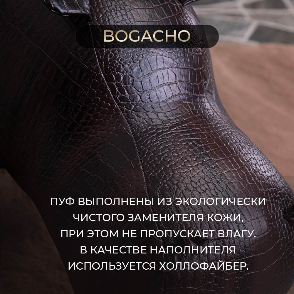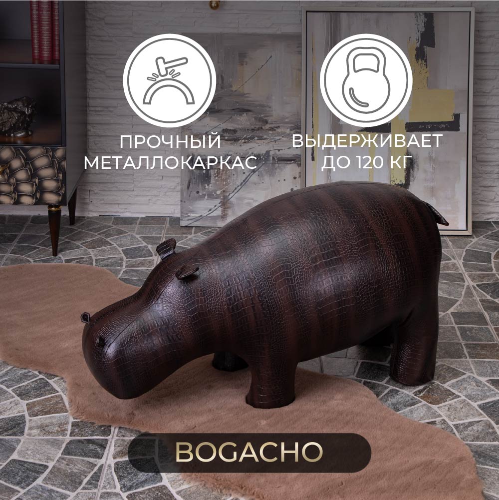 Уникальный бегемотЭтот бегемот уже стал легендой BOGACHO. Создав его, дизайнеры компании задали настоящий тренд на подобные предметы мебели. "Пуф Бегемот" - вещь оригинальная, позволяющая выйти за рамки обыденности, внести новый и неожиданный штрих не только в обстановку, но и в жизнь, заключенную, как это водится у деловых людей, в строгие рамки графиков, договоров, планов и схем. Уникальный дизайн и необычная форма пуфа позволят разместить его как в классических, так и в современных интерьерах.