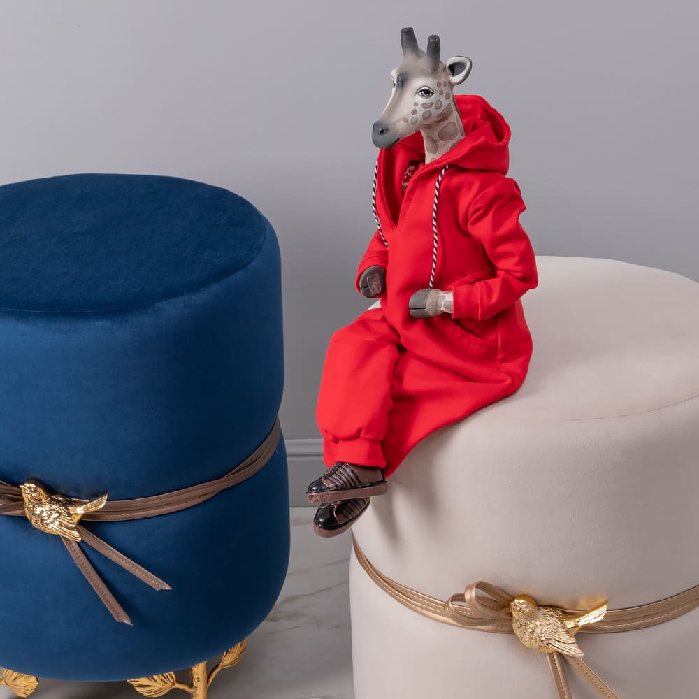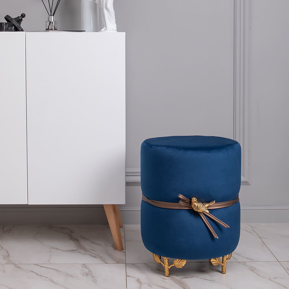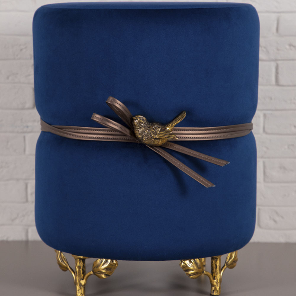 Банкетка Терра Эйри - оригинальный предмет интерьера, способный выполнять самые разные задачи. Придать пространству аутентичности и креативности, роскоши и современного шика, в спальне, в прихожей, в коридоре или гостиной - все это возможно осуществить с помощью одной лишь интерьерной детали. Мягкий круглый пуф Терра Эйри с декором птичкой - это прекрасное дополнение к туалетному столику или замена прикроватной тумбе. Можно использовать ее как подставку для ног во время просмотра кинофильма или поставить в гардеробную как функциональный аксессуар. Словом, эта универсальная вещь может быть хоть табуретом, хоть предметом декора - такая мебель малых форм подстроится под нужды хозяина, не утяжеляя пространство. Ножки из кованой стали не испортят напольное покрытие, благодаря защитным накладкам, а фирменная мраморная птичка золотого цвета станет изюминкой вашего будуара. Сделайте роскошный подарок маме, бабушке или подруге - в любой квартире ему найдется место!