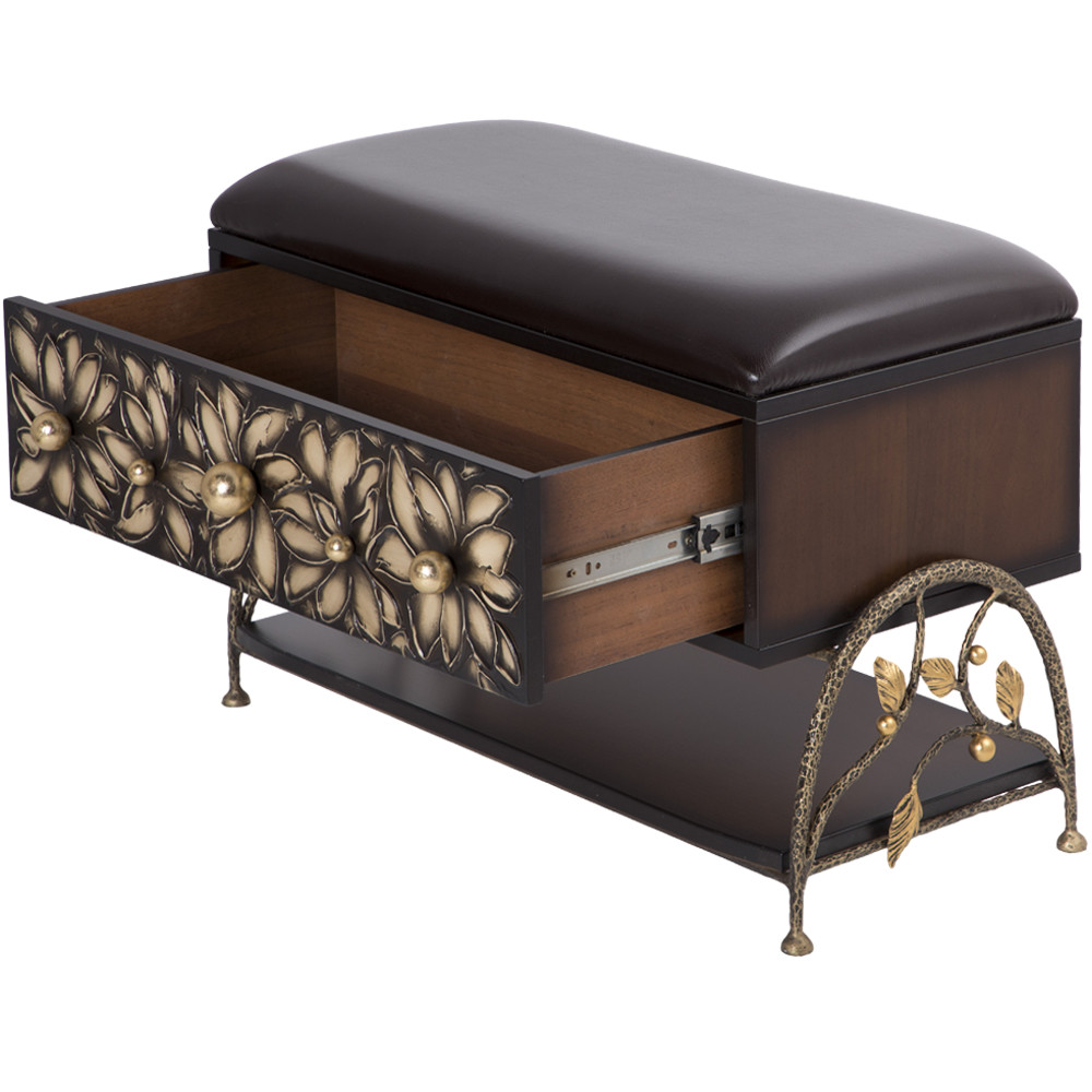 Мягкий элемент банкетки Терра Каштан Амбер обит текстурной тканью. Наполнителем служит холлофайбер. Ножки банкетки изготовлены из кованой стали.Изделие будет отлично смотреться в холле, гардеробной или спальне.Индивидуализируйте дизайн своего дома вместе с роскошными банкетками от BOGACHO.