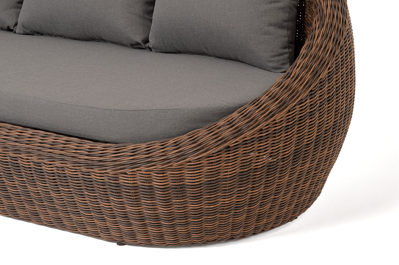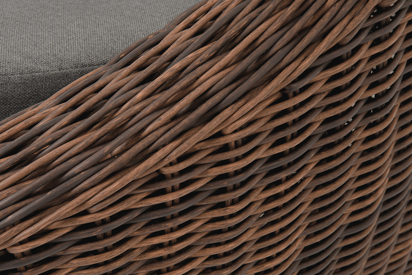 Для оплетки каркаса используется высококачественный искусственный ротанг. Мебель выполнена в коричневом цвете.