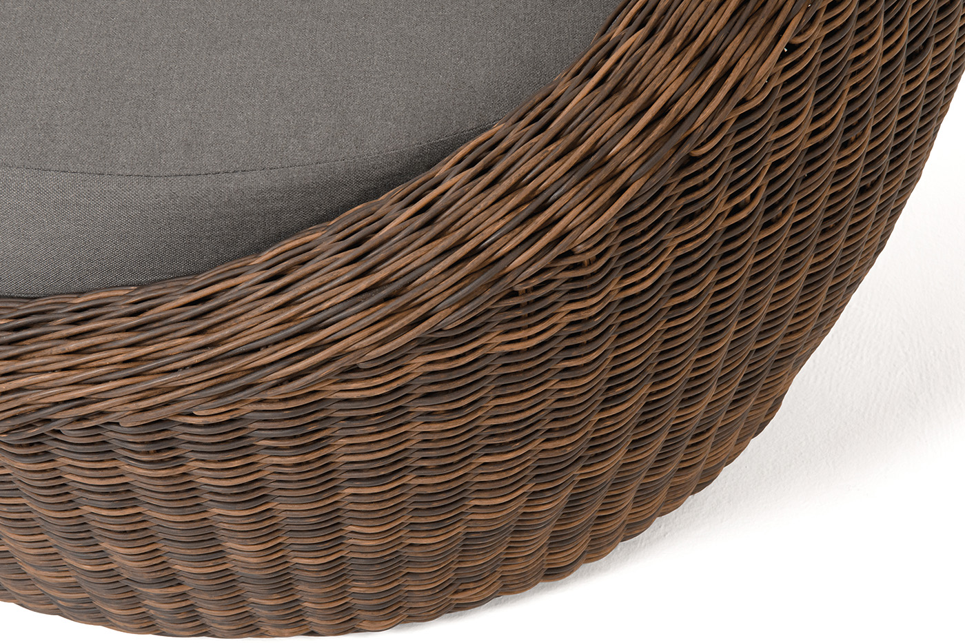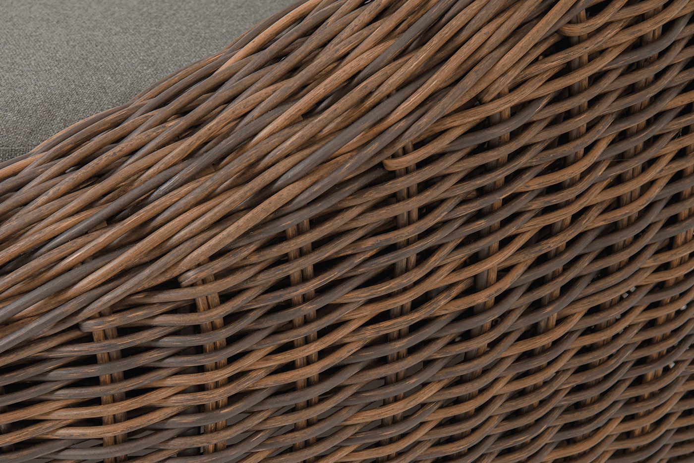 Надежность и износостойкость мебели гарантирует каркас, который сделан из качественного алюминия. Ее дополняет ручное плетение, при изготовлении которого используется искусственный ротанг. Представлена модель в коричневом цвете.