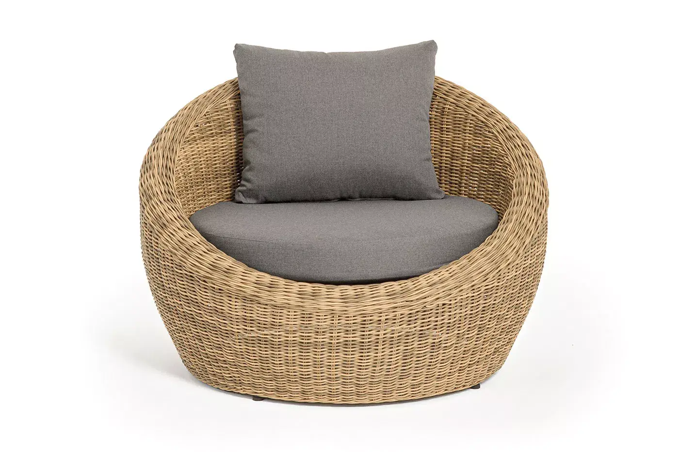Кресло «Барселона» входит в комплект лаунж-зоны с плетеным диваном и журнальным столиком аналогичной серии. Так же его можно использовать, как самостоятельный элемент мебели.