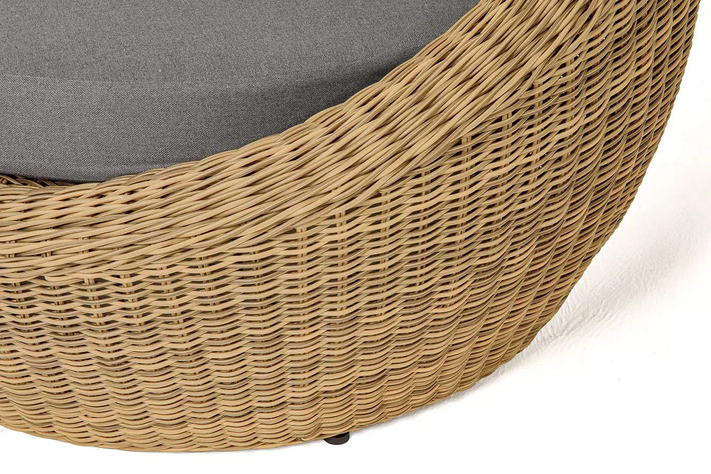 В комплекте с уличным ротанговым креслом идут мягкие подушки со съёмными чехлами серого оттенка. Они пошиты из полиэстера, который не боится повышенной влажности благодаря наличию влагоотталкивающей пропитки. Плотность ткани составляет 300гр/м2.
