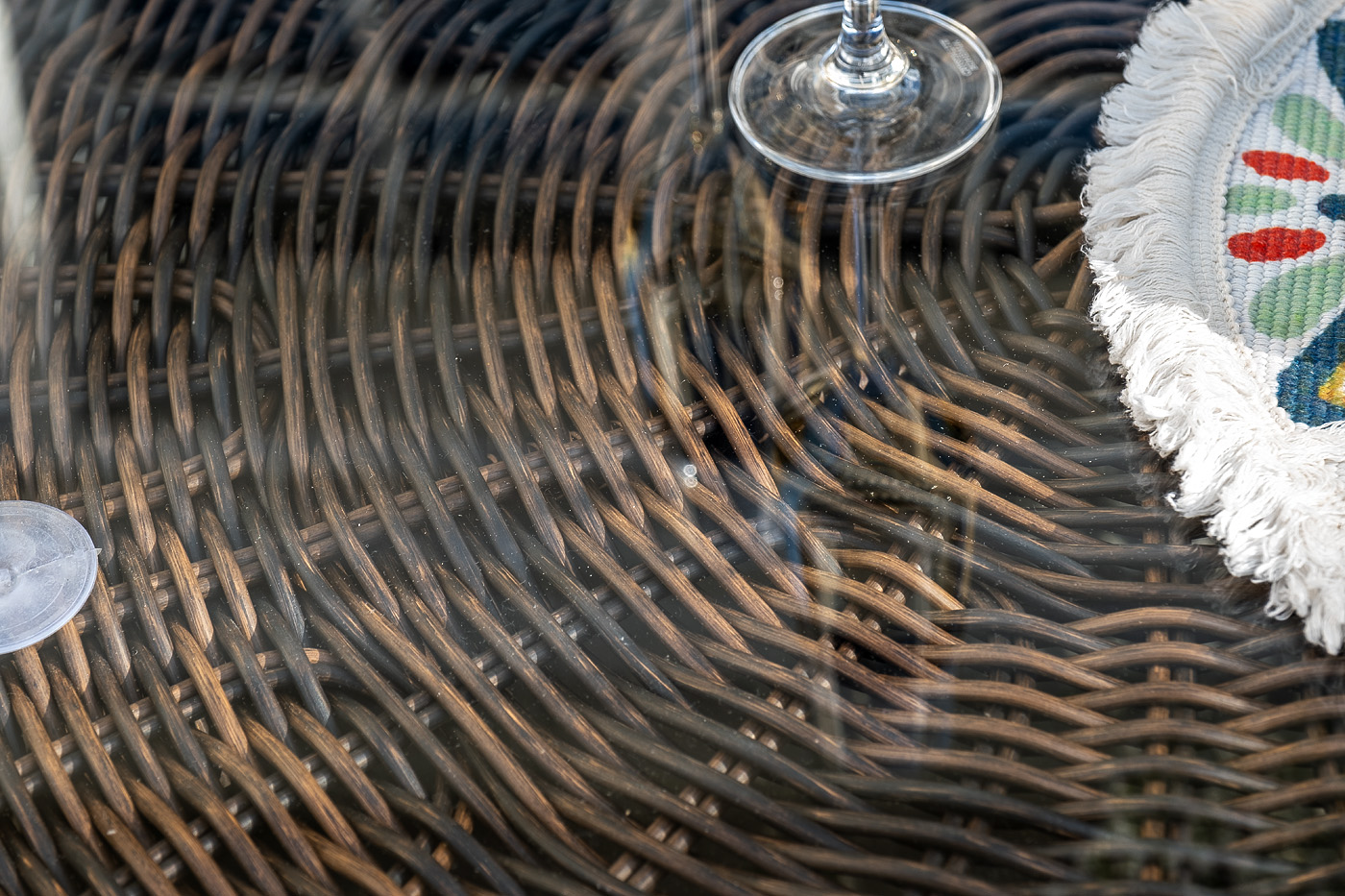 Поверхность плетеного столика представляет столешница из закаленного стекла – 5 мм.