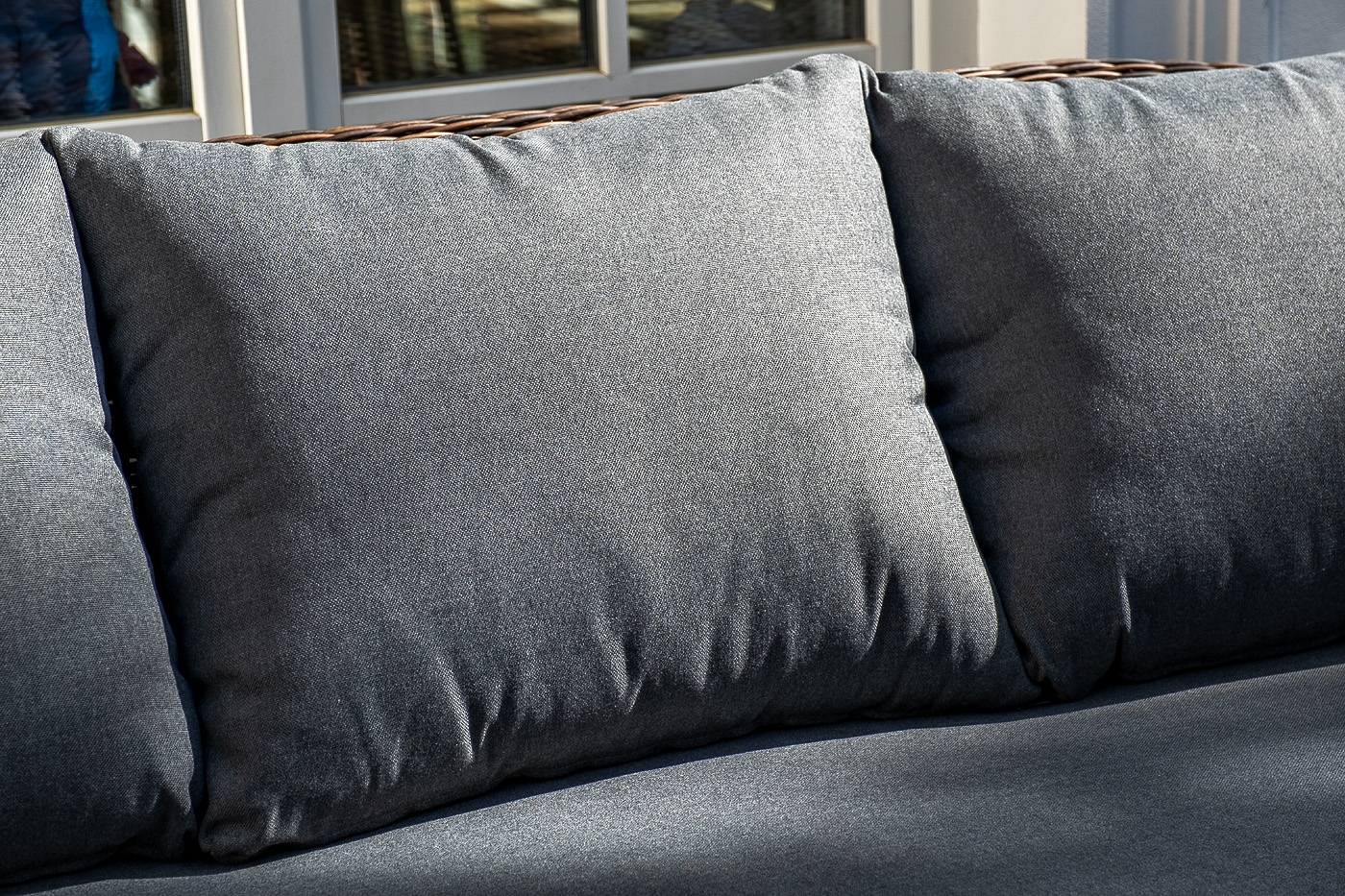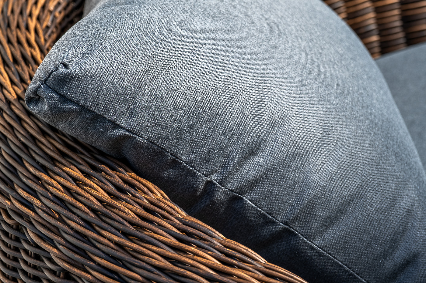 На креслах и диване предусмотрены мягкие подушки, съёмные чехлы которых пошиты из полиэстера, плотностью 300гр/м2. Ткань в обязательном порядке пропитывается влагоотталкивающими составами.
