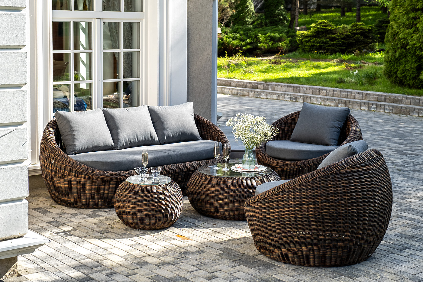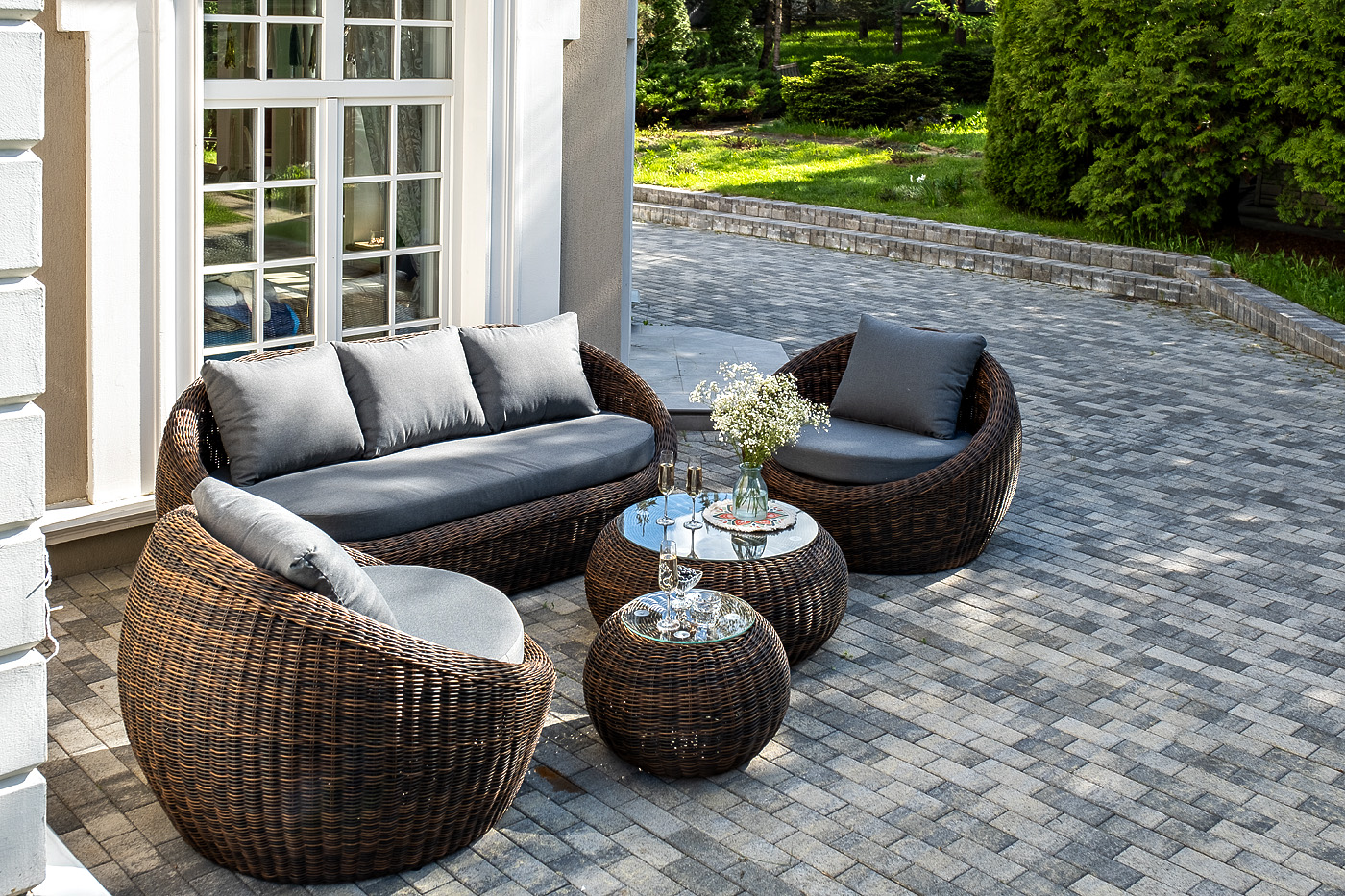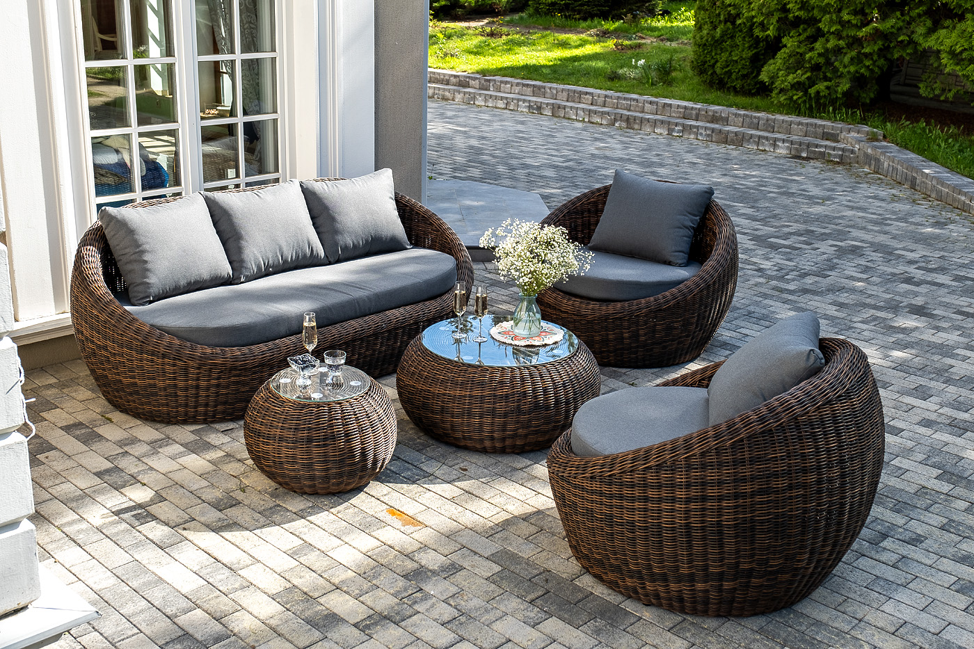 Комплект «Барселона» с плетением из искусственного круглого ротанга для обустройства лаунж-зоны.